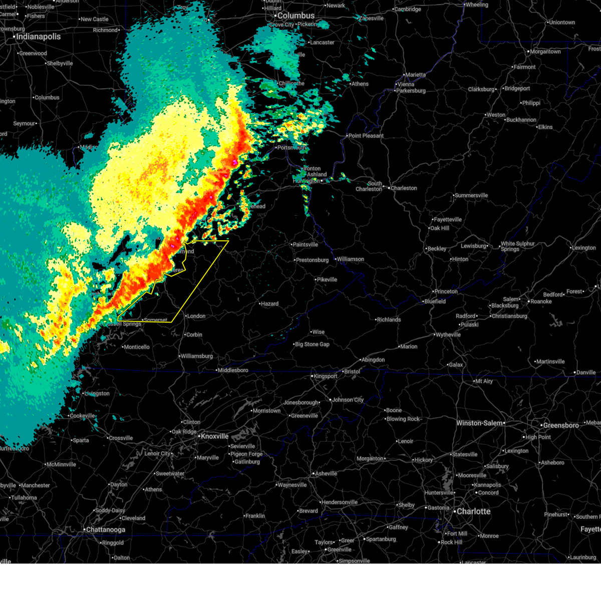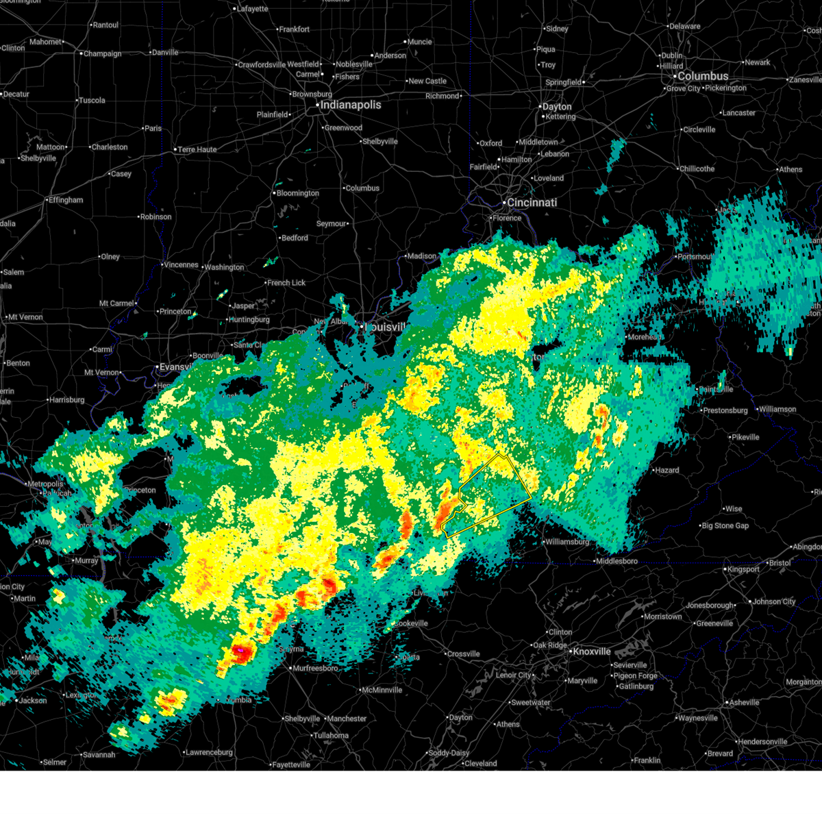 At 1006 pm edt, a severe thunderstorm capable of producing a tornado was located over dabney, or 7 miles north of somerset, moving east at 20 mph (radar indicated rotation). Hazards include tornado and half dollar size hail. Flying debris will be dangerous to those caught without shelter. mobile homes will be damaged or destroyed. damage to roofs, windows, and vehicles will occur. tree damage is likely. this dangerous storm will be near, dabney around 1010 pm edt. bobtown and ruth around 1015 pm edt. woodstock around 1020 pm edt. valley oak, shopville and grade around 1025 pm edt. bent, bloss, level green, pongo, hansford and dykes around 1030 pm edt. other locations impacted by this tornadic thunderstorm include pulaski and ferguson. this includes the following highways, interstate 75 in east central kentucky near mile marker 55. kentucky highway 80 in pulaski county between mile markers 18 and 40. louis b. Nunn parkway.