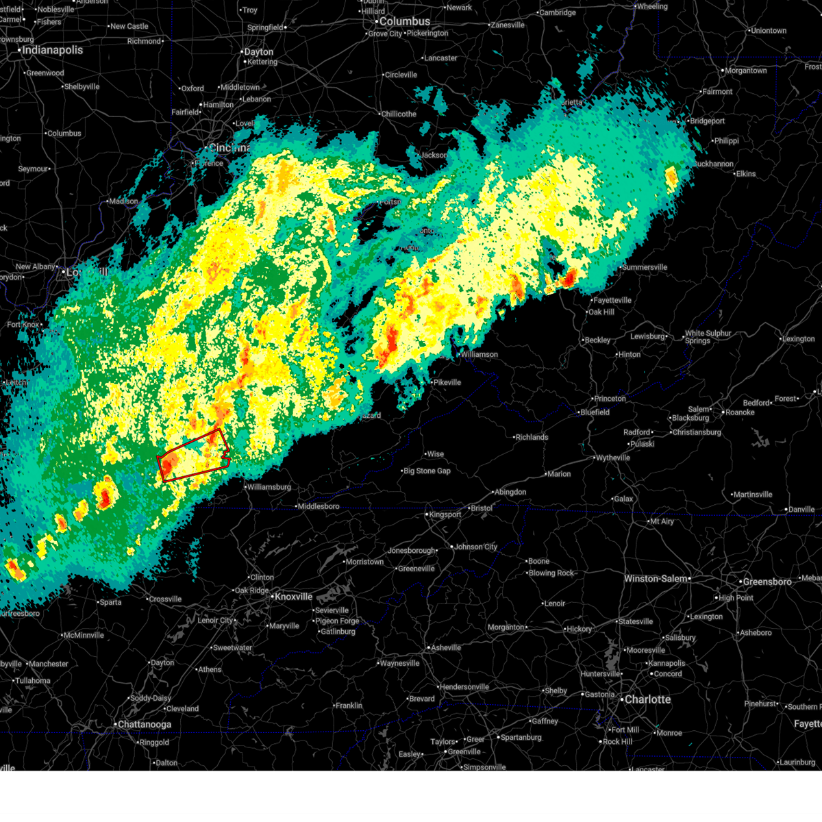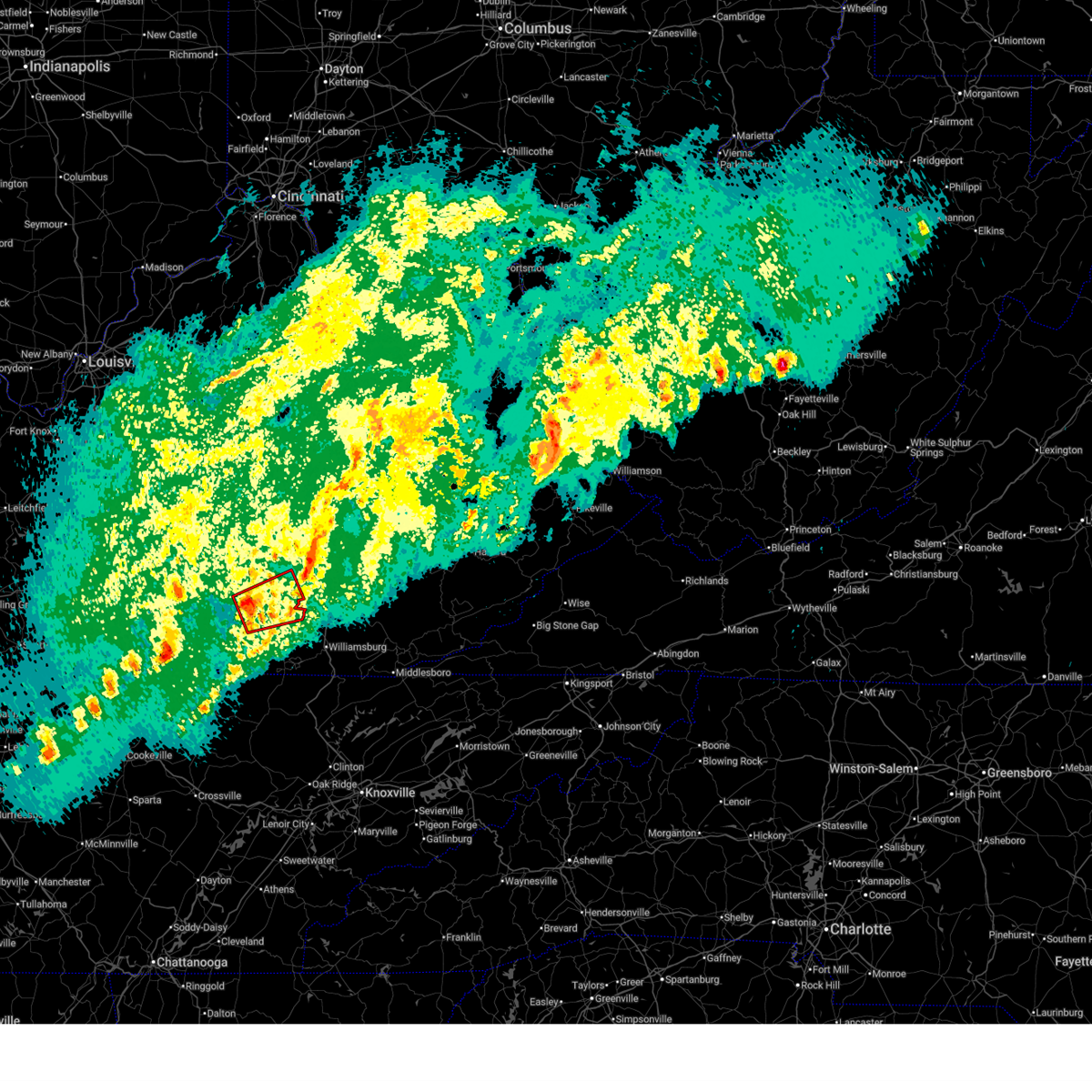 At 1156 pm edt, severe thunderstorms were located along a line extending from palmer to near science hill, moving east at 35 mph (radar indicated). Hazards include 60 mph wind gusts and penny size hail. Expect damage to roofs, siding, and trees. these severe storms will be near, clover bottom around 1200 am edt. Other locations in the path of these severe thunderstorms include goochland, jep hill, alumbaugh, carico and slade.