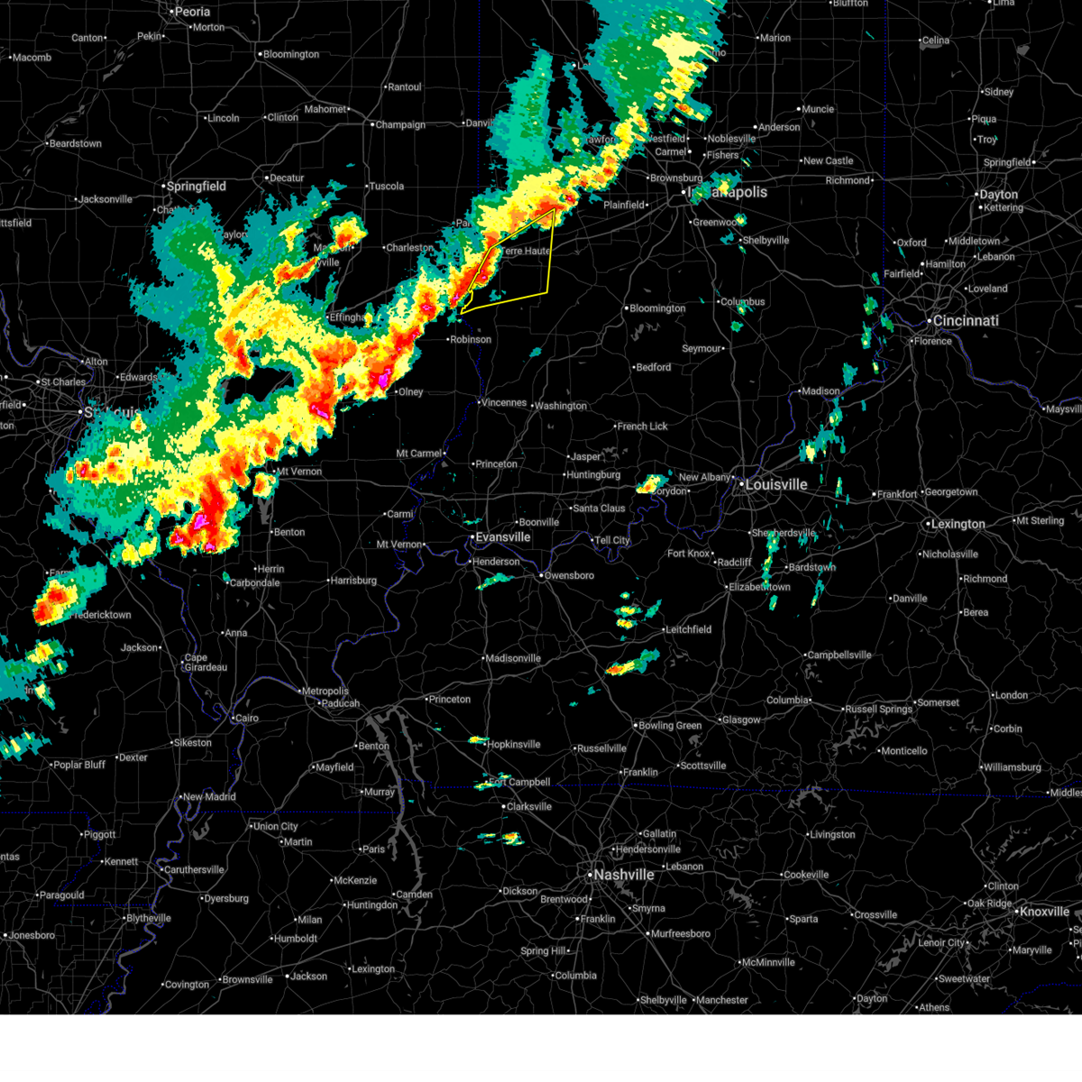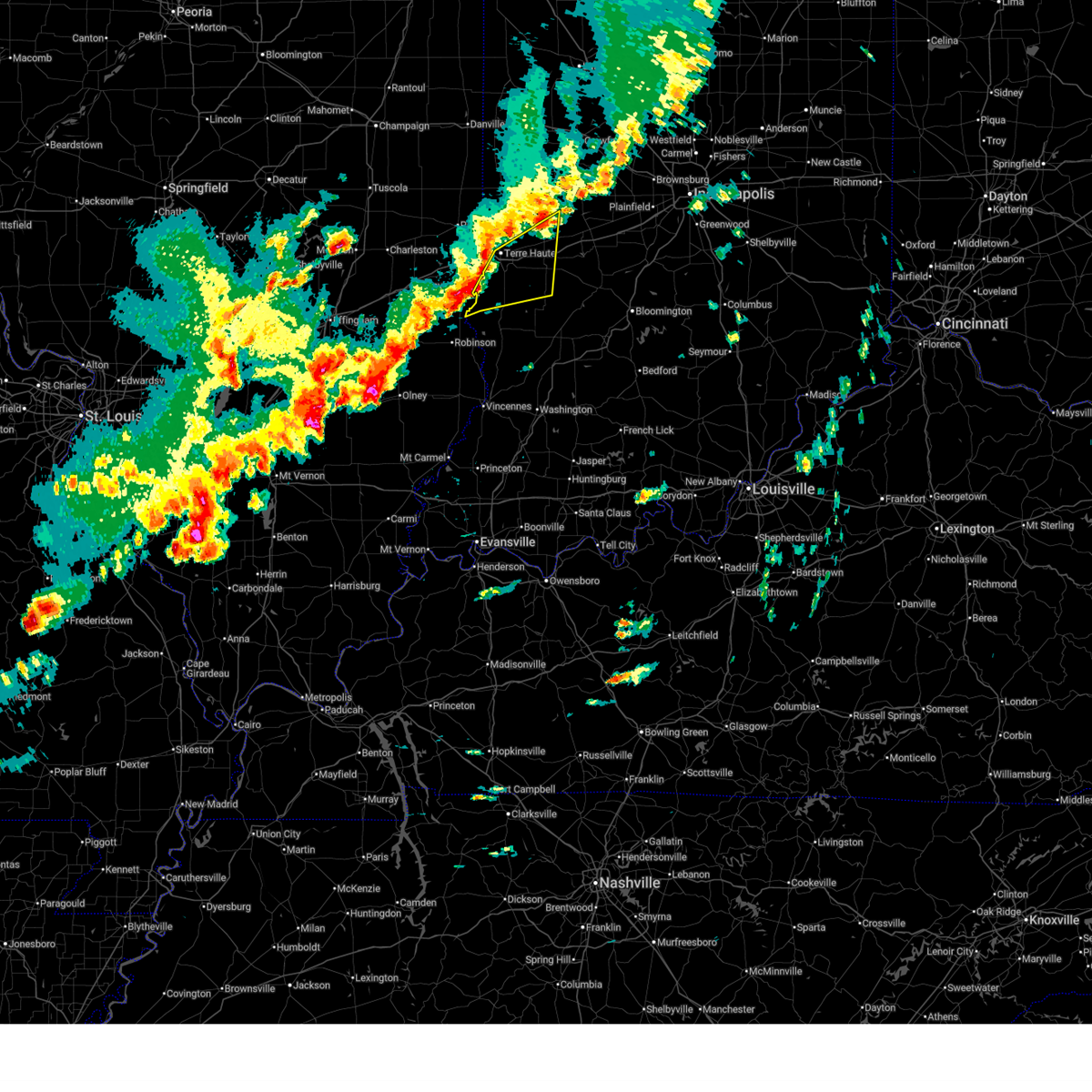 At 443 pm edt, a severe thunderstorm capable of producing a tornado was located over terre haute, moving east at 40 mph (radar indicated rotation). Hazards include tornado and ping pong ball size hail. Flying debris will be dangerous to those caught without shelter. mobile homes will be damaged or destroyed. damage to roofs, windows, and vehicles will occur. tree damage is likely. locations impacted include, terre haute, brazil, west terre haute, seelyville, knightsville, harmony, staunton, carbon, center point, riley, fontanet, north terre haute, and indiana state university. This includes interstate 70 between mile markers 4 and 29.