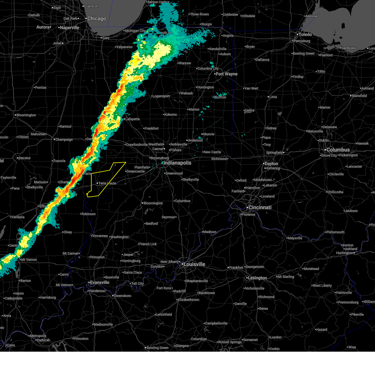 At 845 pm edt, a severe thunderstorm capable of producing a tornado was located over dennison, or 7 miles west of terre haute, moving northeast at 30 mph (radar indicated rotation). Hazards include tornado. Flying debris will be dangerous to those caught without shelter. mobile homes will be damaged or destroyed. damage to roofs, windows, and vehicles will occur. tree damage is likely. this dangerous storm will be near, west terre haute around 855 pm edt. indiana state university around 900 pm edt. terre haute and north terre haute around 905 pm edt. seelyville around 915 pm edt. fontanet around 925 pm edt. This includes interstate 70 between mile markers 1 and 16.