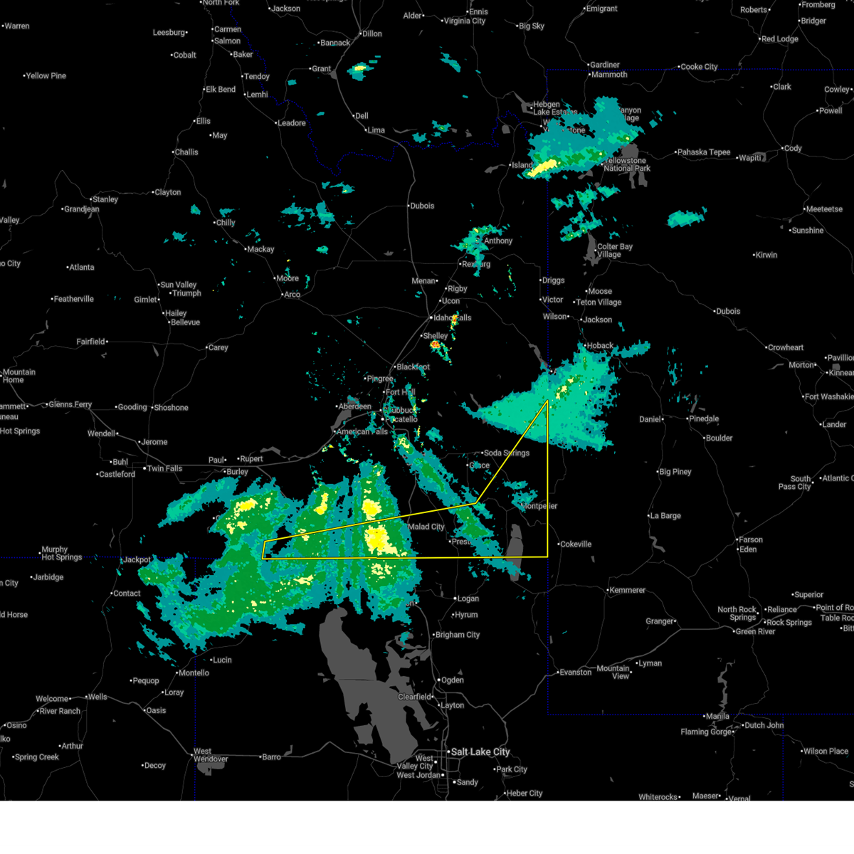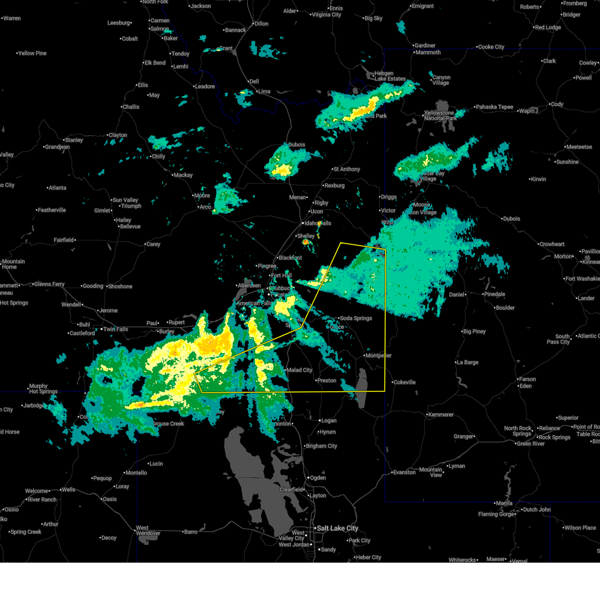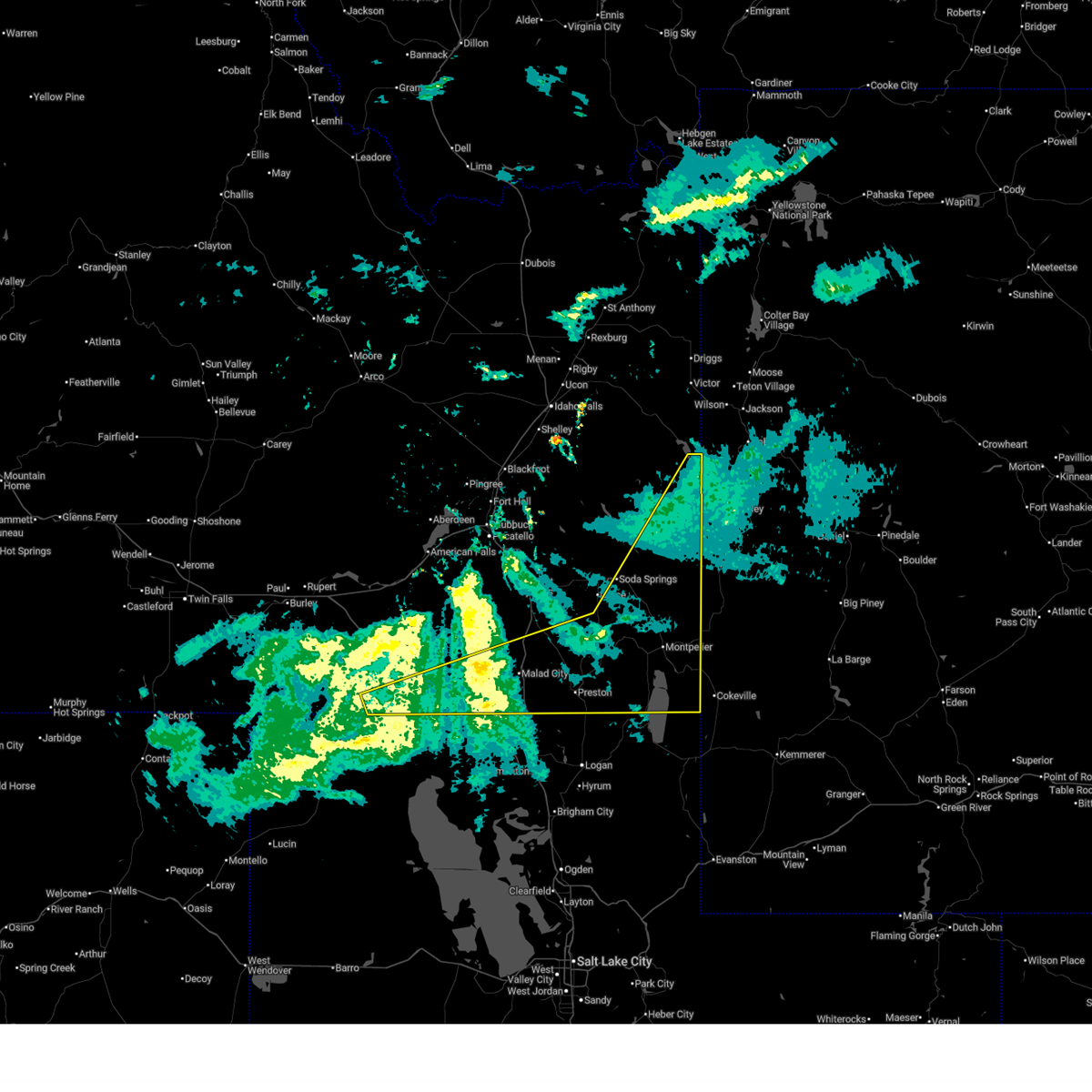 Svrpih the national weather service in pocatello has issued a * severe thunderstorm warning for, southern caribou county in southeastern idaho, eastern oneida county in southeastern idaho, southeastern bannock county in southeastern idaho, franklin county in southeastern idaho, bear lake county in southeastern idaho, * until 645 pm mdt. * at 608 pm mdt, severe thunderstorms were located along a line extending from near lava hot springs to franklin, moving east at 50 mph (radar indicated). Hazards include 70 mph wind gusts and penny size hail. Expect considerable tree damage. Damage is likely to mobile homes, roofs, and outbuildings.