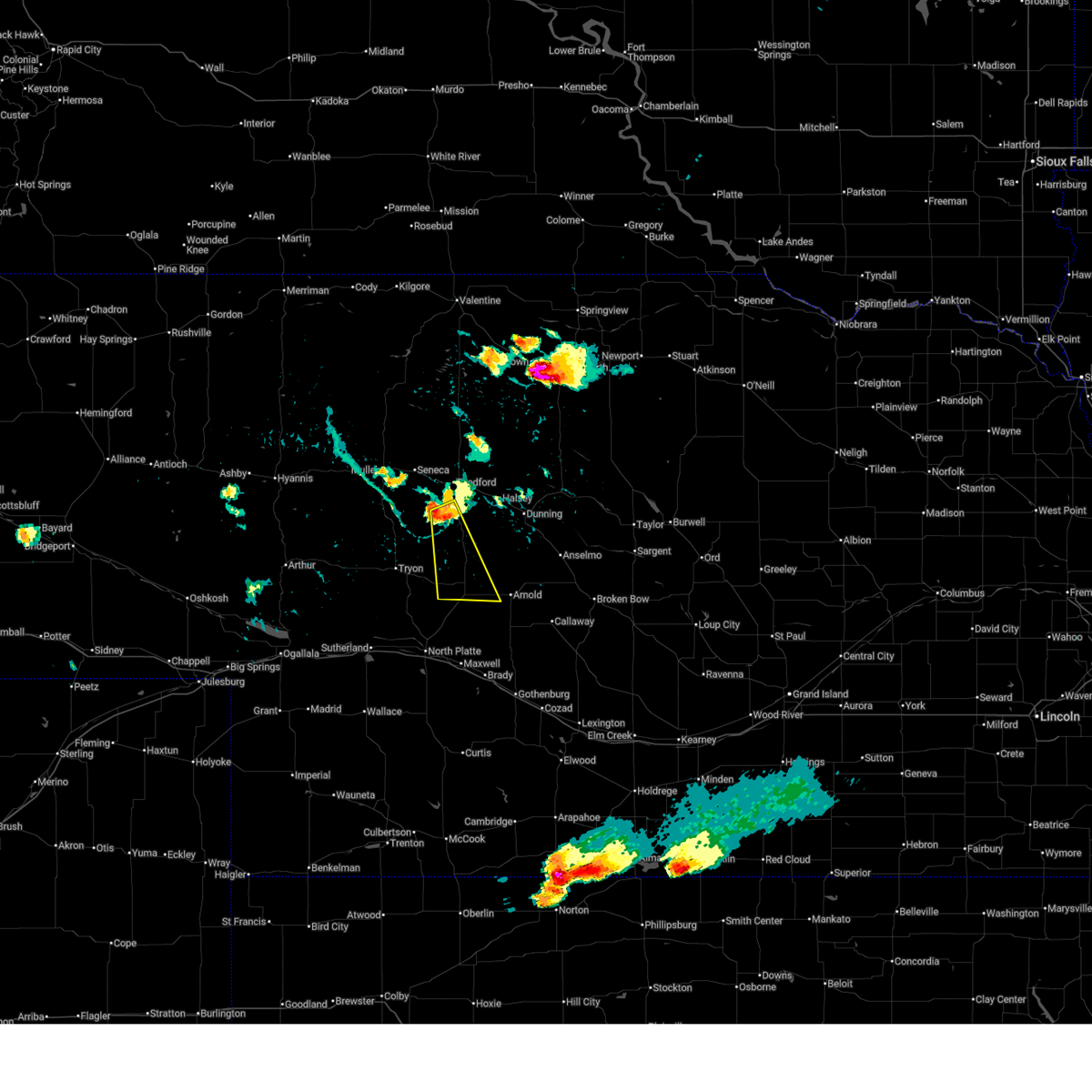 At 814 pm cdt, severe thunderstorms were located along a line extending from near arnold to 16 miles west of callaway to near maxwell to near north platte, moving south at 35 mph (radar indicated). Hazards include golf ball size hail and 70 mph wind gusts. People and animals outdoors will be injured. expect hail damage to roofs, siding, windows and vehicles. expect considerable tree damage. wind damage is also likely to mobile homes, roofs and outbuildings. this includes the following highways, highway 92 between mile markers 217 and 254. highway 97 between mile markers 1 and 25. interstate 80 in nebraska between mile markers 166 and 199. highway 83 between mile markers 77 and 113. Locations impacted include, etna, logan, brady, gandy, maxwell, north platte, stapleton, north platte airport, hoagland, keith, arnold, birdwood, finchville and lake maloney state recreation area.