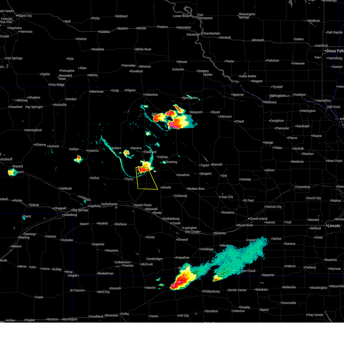 At 1217 am cdt/1117 pm mdt/, severe thunderstorms were located along a line extending from 12 miles north of tryon to near ringgold to 10 miles north of north platte to near dickens, moving east at 50 mph. these are destructive storms for mcpherson county, logan county, and lincoln county to include much of the interstate 80 corridor east of sutherland (public. at 1155 pm cdt, a mesonet station reported an 82 mph gust at sutherland). Hazards include 80 mph wind gusts. Flying debris will be dangerous to those caught without shelter. mobile homes will be heavily damaged. expect considerable damage to roofs, windows, and vehicles. extensive tree damage and power outages are likely. locations impacted include, north platte, stapleton, tryon, sutherland, hershey, brady, maxwell, gandy, lake maloney state recreation area, ringgold, sutherland reservoir state recreation area, north platte airport, keith, logan, highway 83 crossing the dismal river, cottonwood canyon state wildlife management area, o`fallons, tarboz lake, shanklin bluff and brown lake. this includes the following highways, highway 92 between mile markers 193 and 246. highway 97 between mile markers 1 and 51. interstate 80 in nebraska between mile markers 157 and 206. highway 83 between mile markers 65 and 140. thunderstorm damage threat, destructive hail threat, radar indicated max hail size, <. 75 in wind threat, observed max wind gust, 80 mph.