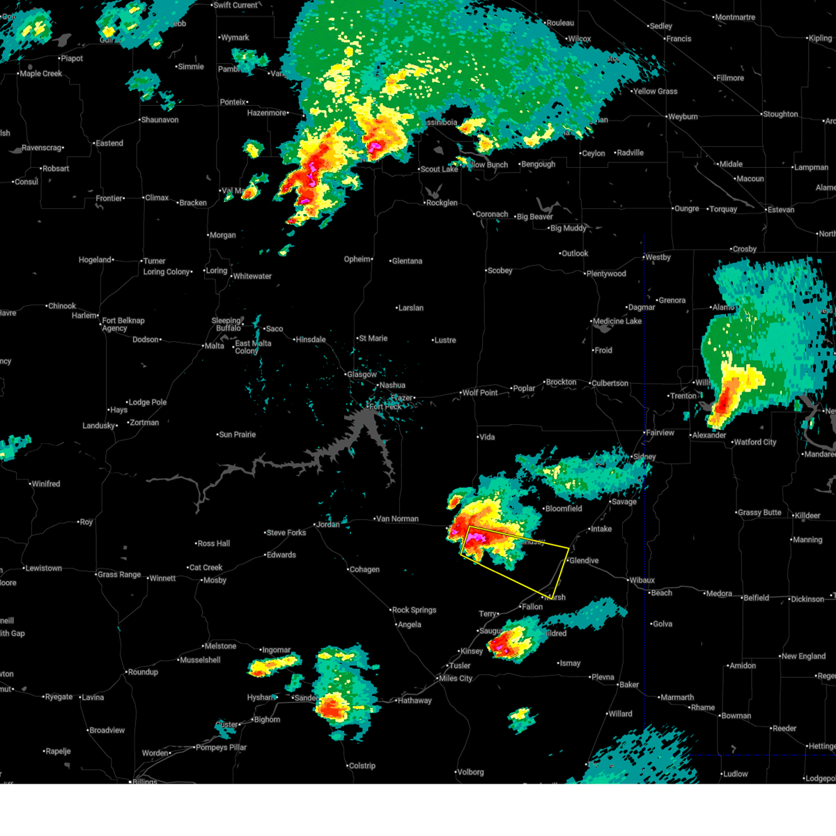 At 642 pm mdt, severe thunderstorms were located along a line extending from lindsay to 13 miles west of wibaux, and moving north at 45 mph (radar indicated). Hazards include 60 mph wind gusts. Expect damage to roofs. siding and trees. severe thunderstorms will be near, glendive around 655 pm. mdt. intake and bloomfield around 705 pm mdt. savage around 715 pm mdt. lambert around 730 pm mdt. Other locations in the warning include stipek, burns, midway, enid, crane and wooley.
