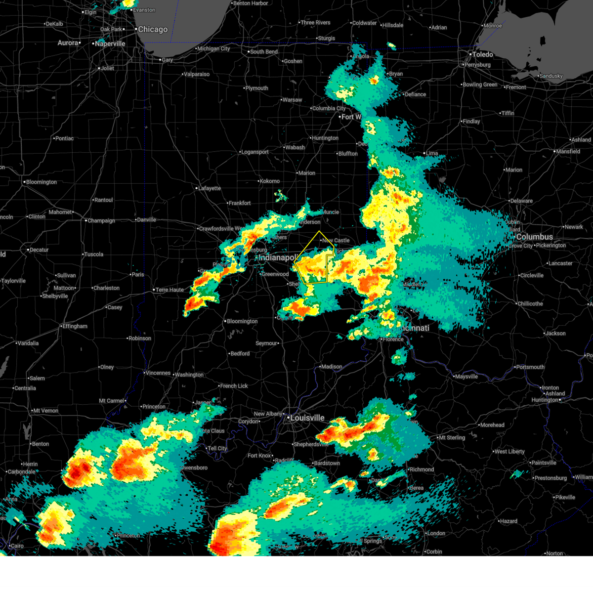 At 419 pm est, severe thunderstorms were located along a line extending from near anderson to near rushville to near greensburg to near vernon, moving east at 60 mph (radar indicated). Hazards include 70 mph wind gusts. Expect considerable tree damage. damage is likely to mobile homes, roofs and outbuildings. locations impacted include, anderson, new castle, greensburg, north vernon, rushville, vernon, glenwood, yorktown, pendleton, chesterfield, knightstown, edgewood, daleville, westport, carthage, spiceland, shirley, markleville, kennard and wilkinson. this includes the following highways, interstate 69 between mile markers 219 and 241. interstate 70 between mile markers 109 and 128. interstate 74 between mile markers 129 and 144. A tornado watch remains in effect until 900 pm est for southeastern indiana.
