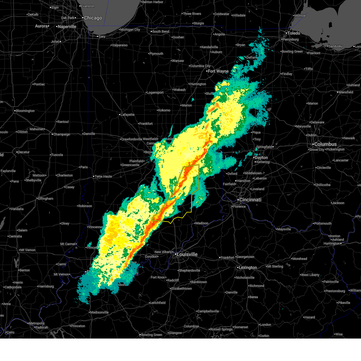 At 835 pm est, severe thunderstorms were located along a line extending from shelbyville to 7 miles southwest of columbus to 7 miles southeast of bedford, moving east at 55 mph (radar indicated). Hazards include 60 mph wind gusts. Expect damage to roofs, siding, and trees. locations impacted include, columbus, shelbyville, seymour, greensburg, north vernon, rushville, brownstown, vernon, adams, mitchell, hope, crothersville, flat rock, milford, westport, geneva, st. paul, medora, elizabethtown, and hartsville. this includes the following highways, interstate 65 between mile markers 37 and 74, and between mile markers 77 and 78. Interstate 74 between mile markers 110 and 144.