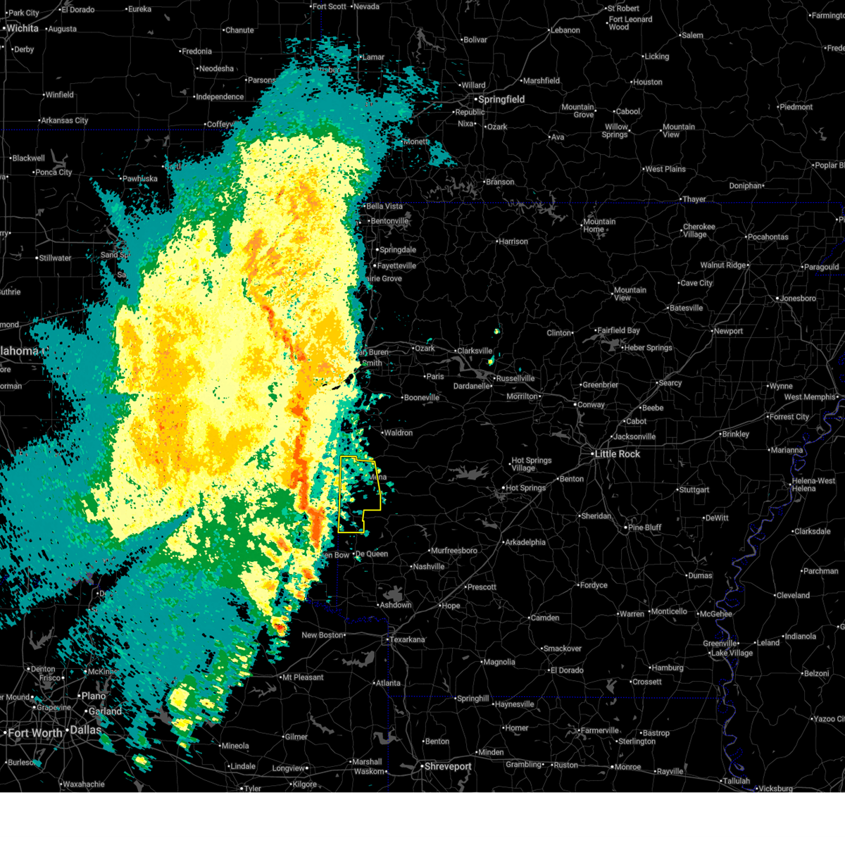 At 1132 am cst, a severe thunderstorm capable of producing a tornado was located near grannis, or 13 miles northwest of de queen, moving north at 40 mph (radar indicated rotation). Hazards include tornado. Flying debris will be dangerous to those caught without shelter. mobile homes will be damaged or destroyed. damage to roofs, windows, and vehicles will occur. tree damage is likely. Locations impacted include, wickes, grannis, hatfield, vandervoort, mena intermountain airport, mccauley, cossatot river state park, cove, nunley, hatton, camp pioneer, bogg springs and dallas.