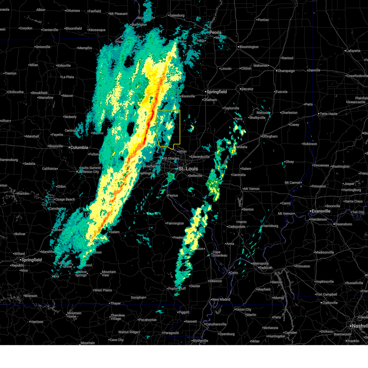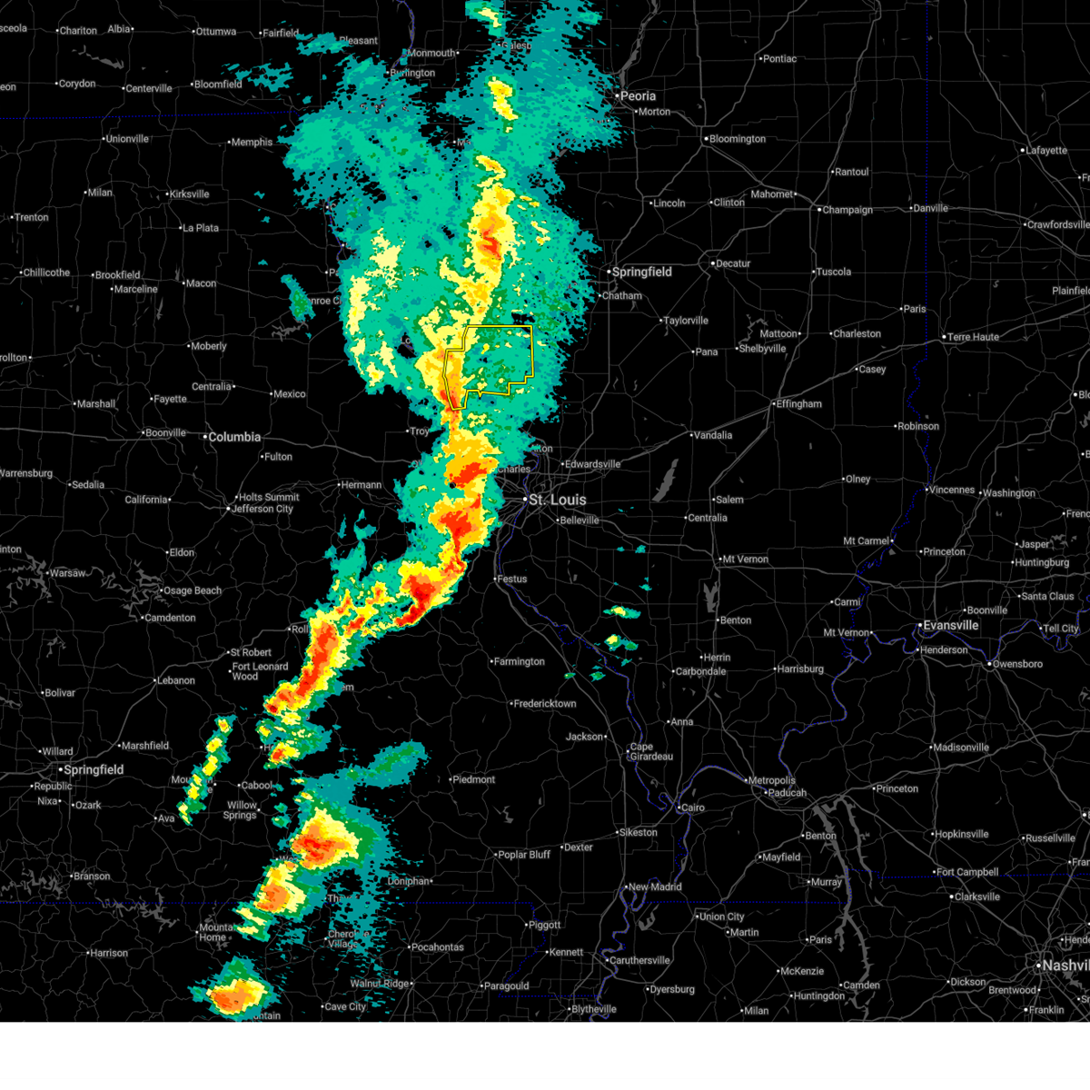 At 1229 am cst, severe thunderstorms were located along a line extending from near palmyra to near kemper to near west alton, moving northeast at 60 mph (trained weather spotters). Hazards include 60 mph wind gusts. Expect damage to roofs, siding, and trees. locations impacted include, florissant, alton, maryland heights, hazelwood, godfrey, bridgeton, wood river, bethalto, jerseyville, litchfield, black jack, carlinville, staunton, virden, gillespie, lambert-st. louis international airport, east alton, carrollton, brighton and girard. this also includes beaver dam state park and lake lou yaeger. this includes the following highways, interstate 55 in illinois between exits 41 and 63. interstate 70 in missouri near exit 231. A tornado watch remains in effect until 400 am cst for south central and southwestern illinois, and east central missouri.