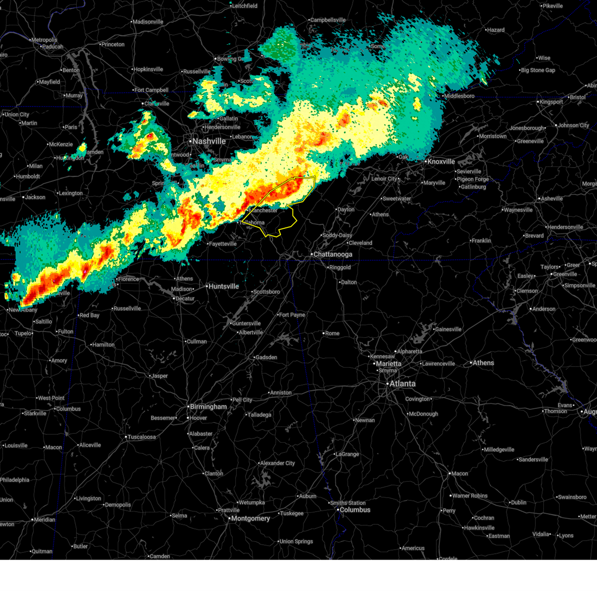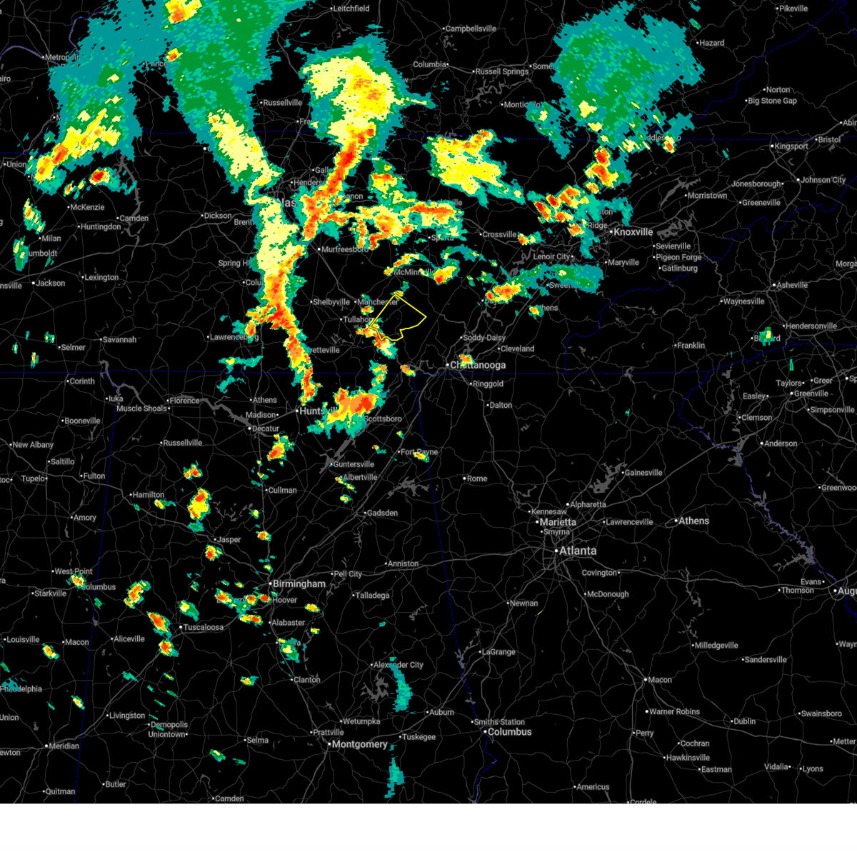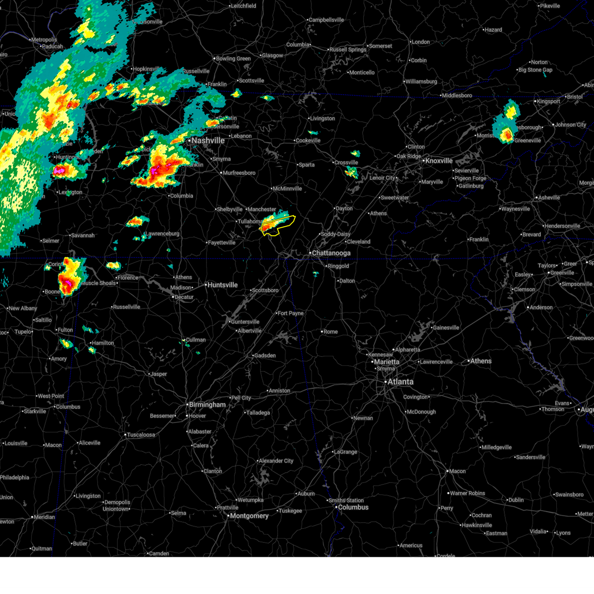 At 122 am cst, a tornado producing storm was located near decherd, or 8 miles northeast of winchester, moving east at 55 mph (radar confirmed tornado). Hazards include damaging tornado. Flying debris will be dangerous to those caught without shelter. mobile homes will be damaged or destroyed. damage to roofs, windows, and vehicles will occur. tree damage is likely. this tornadic storm will be near, monteagle around 135 am cst. tracy city around 140 am cst. gruetli-laager around 150 am cst. other locations impacted by this tornadic thunderstorm include coalmont, palmer, pelham, altamont, beersheba springs, arnold afb, fiery gizzard state park and woods reservoir. This includes interstate 24 between mile markers 120 and 135.
