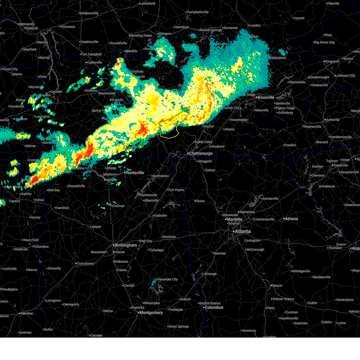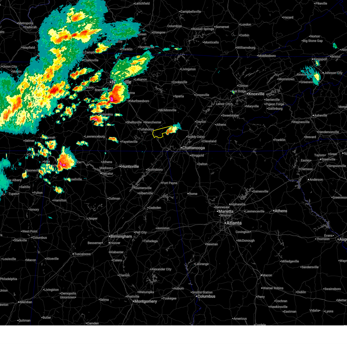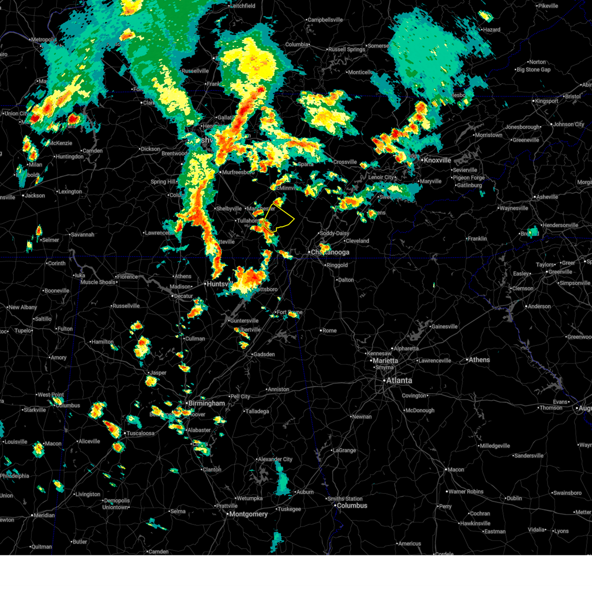 At 122 am cst, a tornado producing storm was located near decherd, or 8 miles northeast of winchester, moving east at 55 mph (radar confirmed tornado). Hazards include damaging tornado. Flying debris will be dangerous to those caught without shelter. mobile homes will be damaged or destroyed. damage to roofs, windows, and vehicles will occur. tree damage is likely. this tornadic storm will be near, monteagle around 135 am cst. tracy city around 140 am cst. gruetli-laager around 150 am cst. other locations impacted by this tornadic thunderstorm include coalmont, palmer, pelham, altamont, beersheba springs, arnold afb, fiery gizzard state park and woods reservoir. This includes interstate 24 between mile markers 120 and 135.