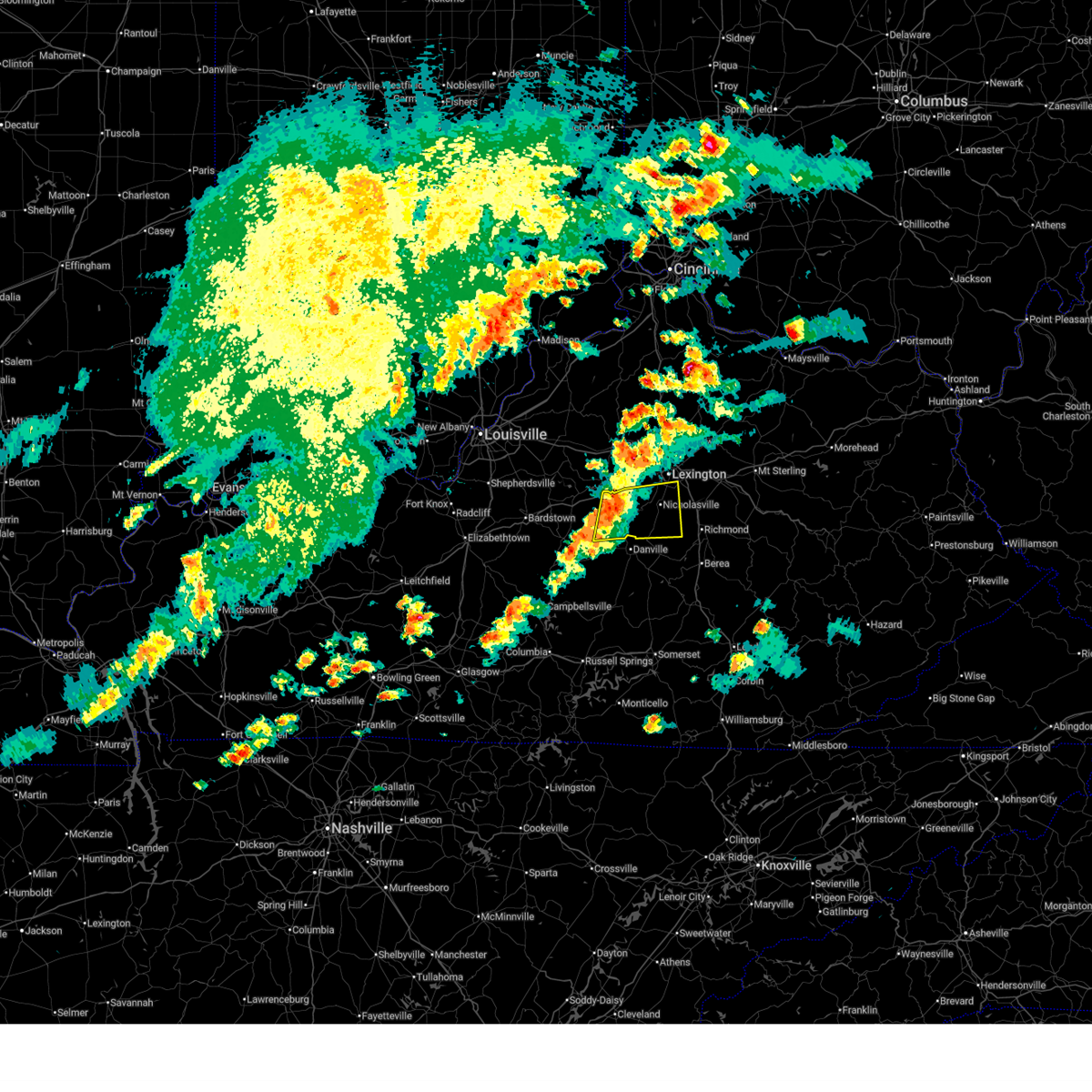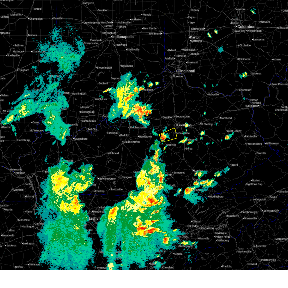 At 223 am edt, a severe thunderstorm capable of producing a tornado was located 7 miles south of versailles, moving northeast at 65 mph (radar indicated rotation). Hazards include tornado. Flying debris will be dangerous to those caught without shelter. mobile homes will be damaged or destroyed. damage to roofs, windows, and vehicles will occur. tree damage is likely. this dangerous storm will be near, lexington, meadowthorpe, fayette mall, u k arboretum, dunbar high school, chevy chase, and cardinal hill around 230 am edt. northland, highlands, bryan station, thoroughbred acres, and cadentown around 235 am edt. Other locations impacted by this tornadic thunderstorm include viley, chilesburg, spindletop estates, coletown, jessamine, dixon town, high bridge, pisgah, holiday hills, and nealton.