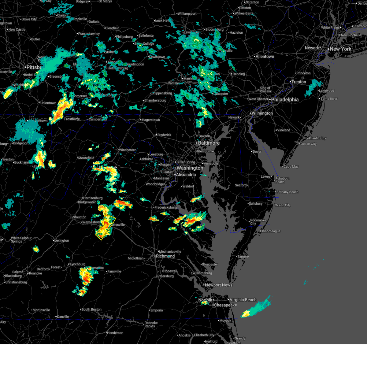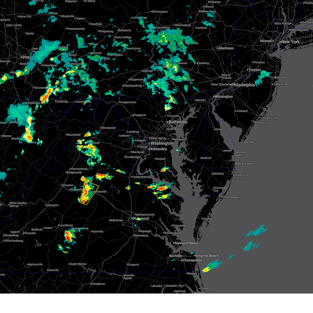 A severe thunderstorm warning remains in effect until 845 pm edt for southeastern rockingham and northern albemarle counties and the city of charlottesville. At 821 pm edt, severe thunderstorms were located along a line extending from 7 miles northeast of charlottesville to troy to near lakeside village, moving northeast at 45 mph.