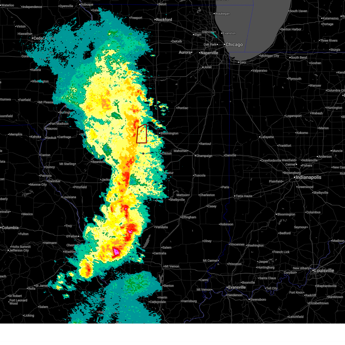 At 121 am cdt, severe thunderstorms were located along a line extending from near bloomington to mclean, moving southeast at 50 mph (radar indicated). Hazards include 60 mph wind gusts and quarter size hail. Hail damage to vehicles is expected. expect wind damage to roofs, siding, and trees. these severe storms will be near, mclean around 125 am cdt. other locations impacted by these severe thunderstorms include shirley, central illinois regional airport, and dillon. this includes the following highways, interstate 155 between mile markers 8 and 31. interstate 39 between mile markers 0 and 6. interstate 55 between mile markers 141 and 169. Interstate 74 between mile markers 102 and 109, and between mile markers 119 and 138.