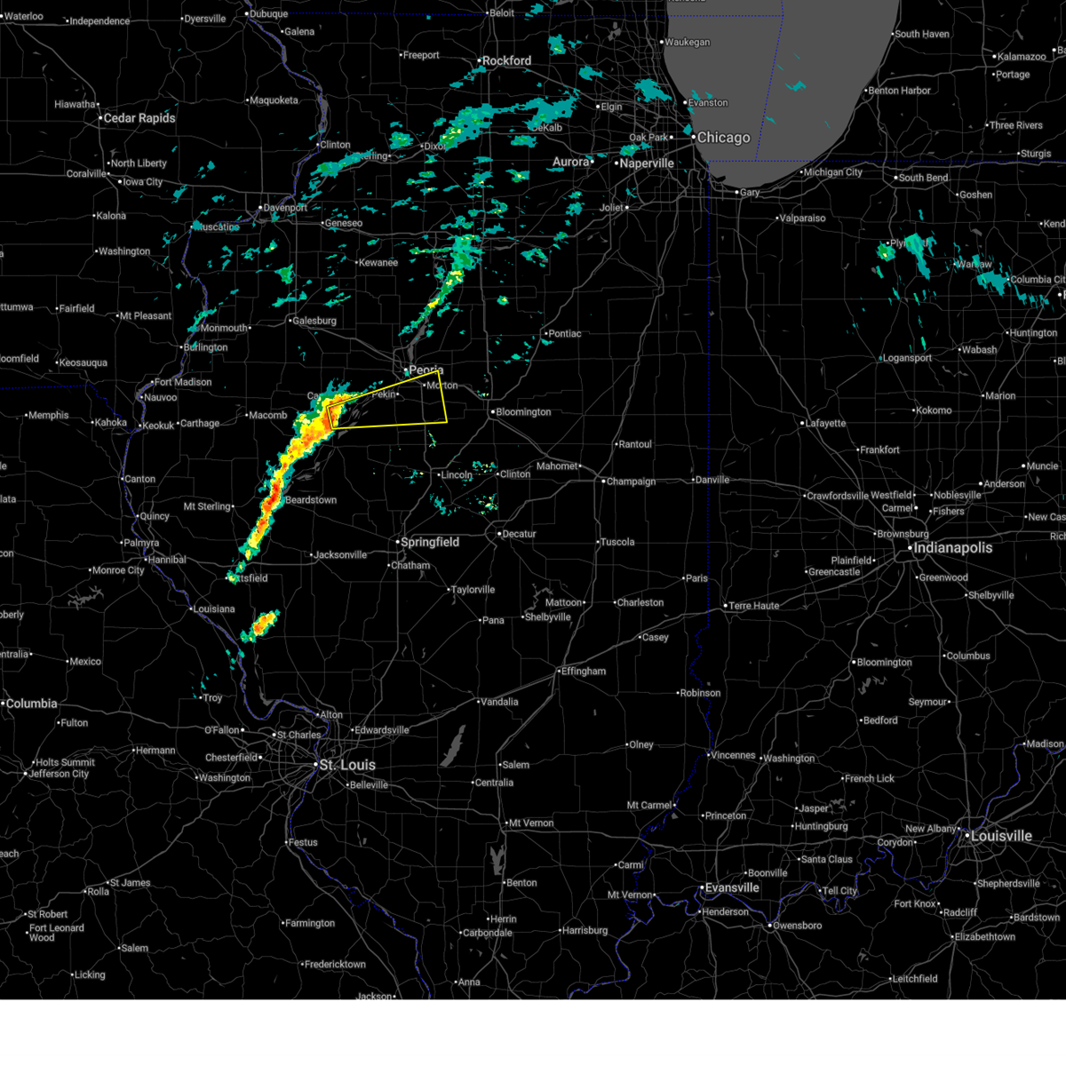 At 850 pm cdt, severe thunderstorms were located along a line extending from near minonk to deer creek to near green valley, moving southeast at 60 mph (trained weather spotters reported 70 mph wind gusts near henry, illinois in marshall county). Hazards include 70 mph wind gusts and penny size hail. Expect considerable tree damage. damage is likely to mobile homes, roofs, and outbuildings. these severe storms will be near, el paso, minonk, mackinaw, delavan, minier, hopedale, goodfield, san jose, emden, and congerville around 855 pm cdt. hudson, gridley, danvers, stanford, carlock, armington, and hartsburg around 900 pm cdt. bloomington, normal, lincoln, atlanta, and mclean around 905 pm cdt. towanda and waynesville around 910 pm cdt. heyworth around 915 pm cdt. other locations impacted by these severe thunderstorms include lawndale, smithville, dillon, powerton, panola, norwood, kickapoo, la rose, peoria heights, and shirley. this includes the following highways, interstate 155 between mile markers 0 and 31. interstate 39 between mile markers 0 and 40. interstate 474 between mile markers 0 and 14. interstate 55 between mile markers 123 and 172. Interstate 74 between mile markers 77 and 139.