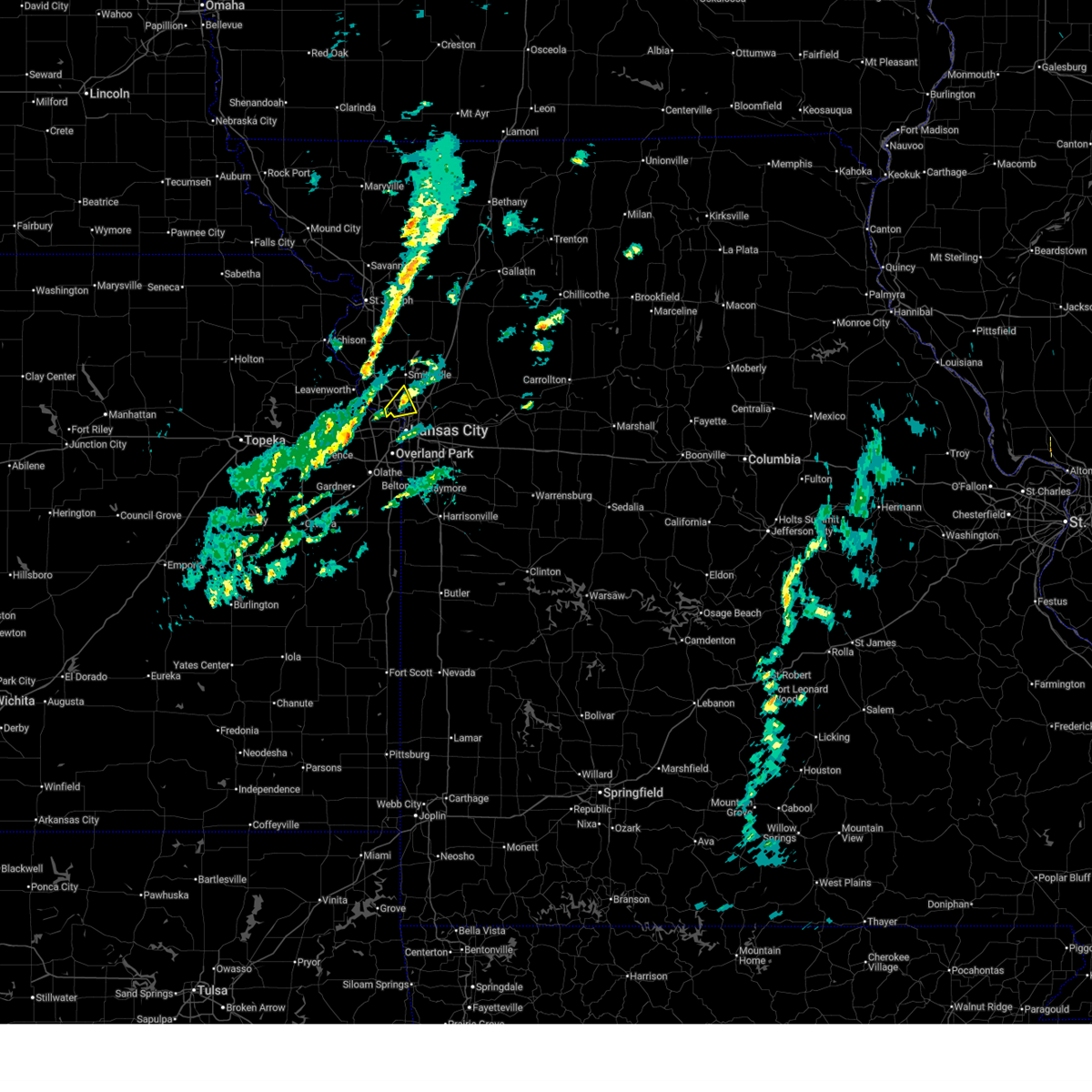 At 716 pm cdt, severe thunderstorms were located along a line extending from nortonville to mclouth to vinland, and moving northeast at 35 mph (radar indicated). Hazards include 60 mph wind gusts and penny size hail. Expect damage to roofs. siding and trees. locations impacted include, tonganoxie, gardner, de soto, olathe, atchison, leavenworth, basehor, weston, lansing, bonner springs, platte city, edwardsville, shawnee, lake quivira, easton, linwood, rushville, tracy, camden point and reno. this will impact the following interstates, i-70 in kansas between mile markers 410 and 416. i-35 in kansas between mile markers 208 and 221. i-435 loop from mile markers 1 to 34 to 83. i-29 between mile markers 14 and 30. 0. 75in.