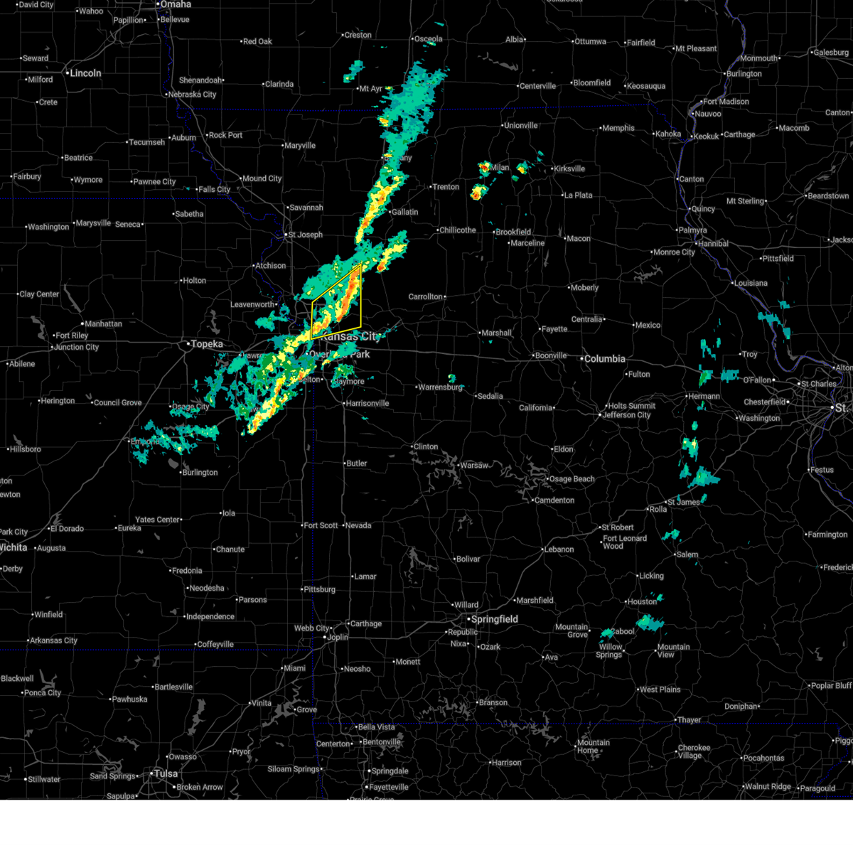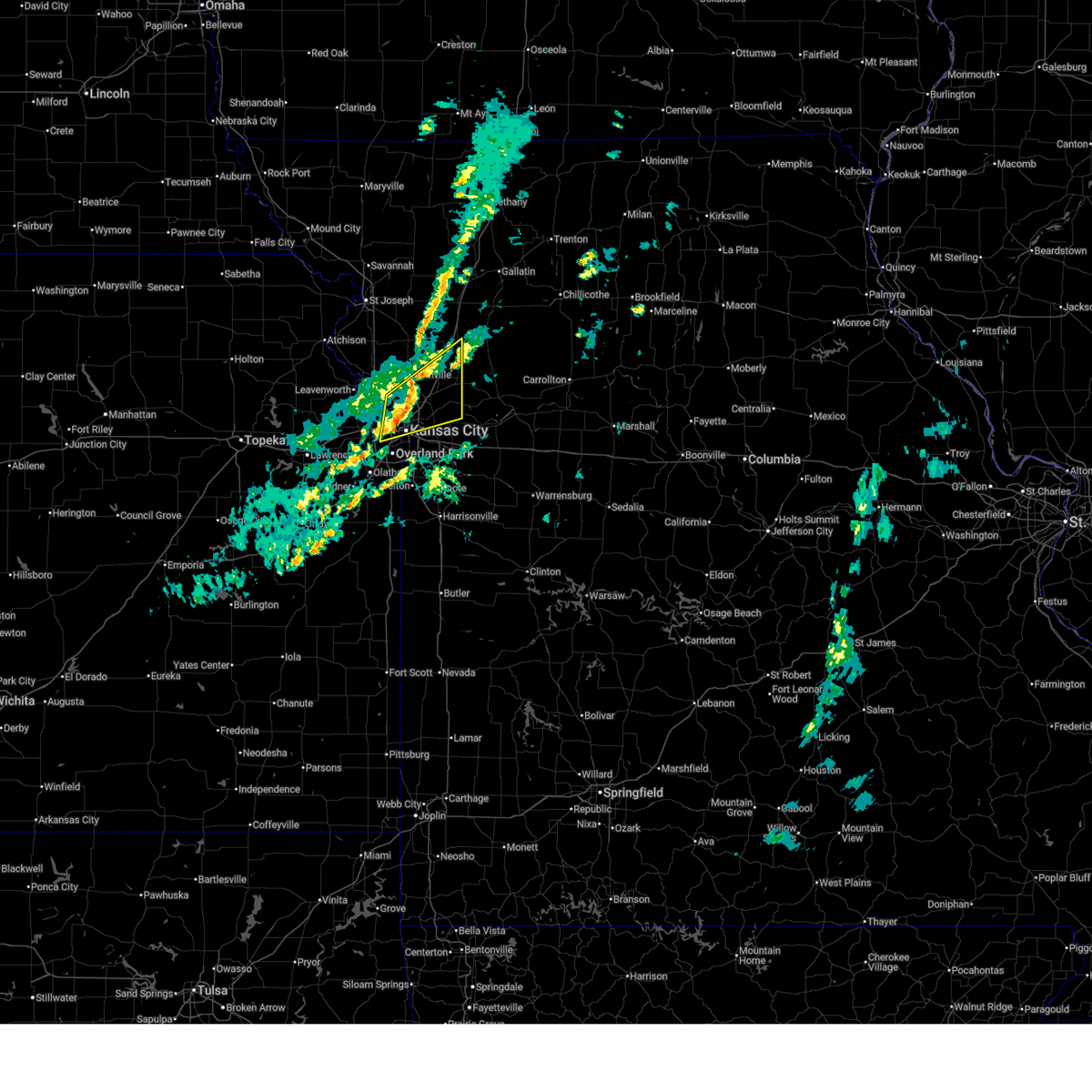 At 132 am cdt, severe thunderstorms were located along a line extending from kearney to avondale to lenexa, and moving southeast at 50 mph. these are very dangerous storms (radar indicated). Hazards include 80 mph wind gusts and quarter size hail. Flying debris will be dangerous to those caught without shelter. mobile homes will be heavily damaged. expect considerable damage to roofs, windows and vehicles. extensive tree damage and power outages are likely. Locations impacted include, kansas city, excelsior springs, overland park, mission hills, prairie village, leawood, sugar creek, courtney, independence, raytown, grandview, buckner, blue springs, lee`s summit, westwood hills, mission woods, crystal lakes, woods heights, missouri city and sibley.