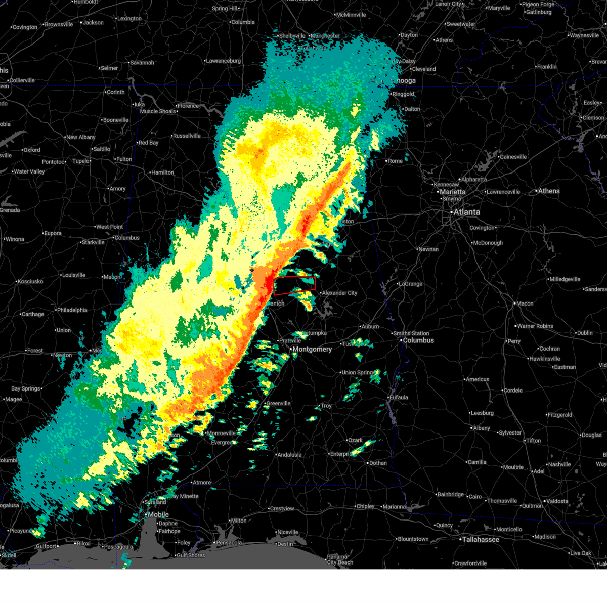 At 347 am cst, severe thunderstorms were located along a line extending from near sparkling springs to near lyle, moving south at 45 mph (radar indicated). Hazards include 60 mph wind gusts. Expect damage to roofs, siding, and trees. Locations impacted include, alexander city, dadeville, goodwater, camp hill, rockford, kellyton, weogufka, equality, stewartville, jacksons` gap, new site, goldville, hanover, lyle, pentonville, bradford, cottage grove, bentleyville, strickland crossroads and moriah.