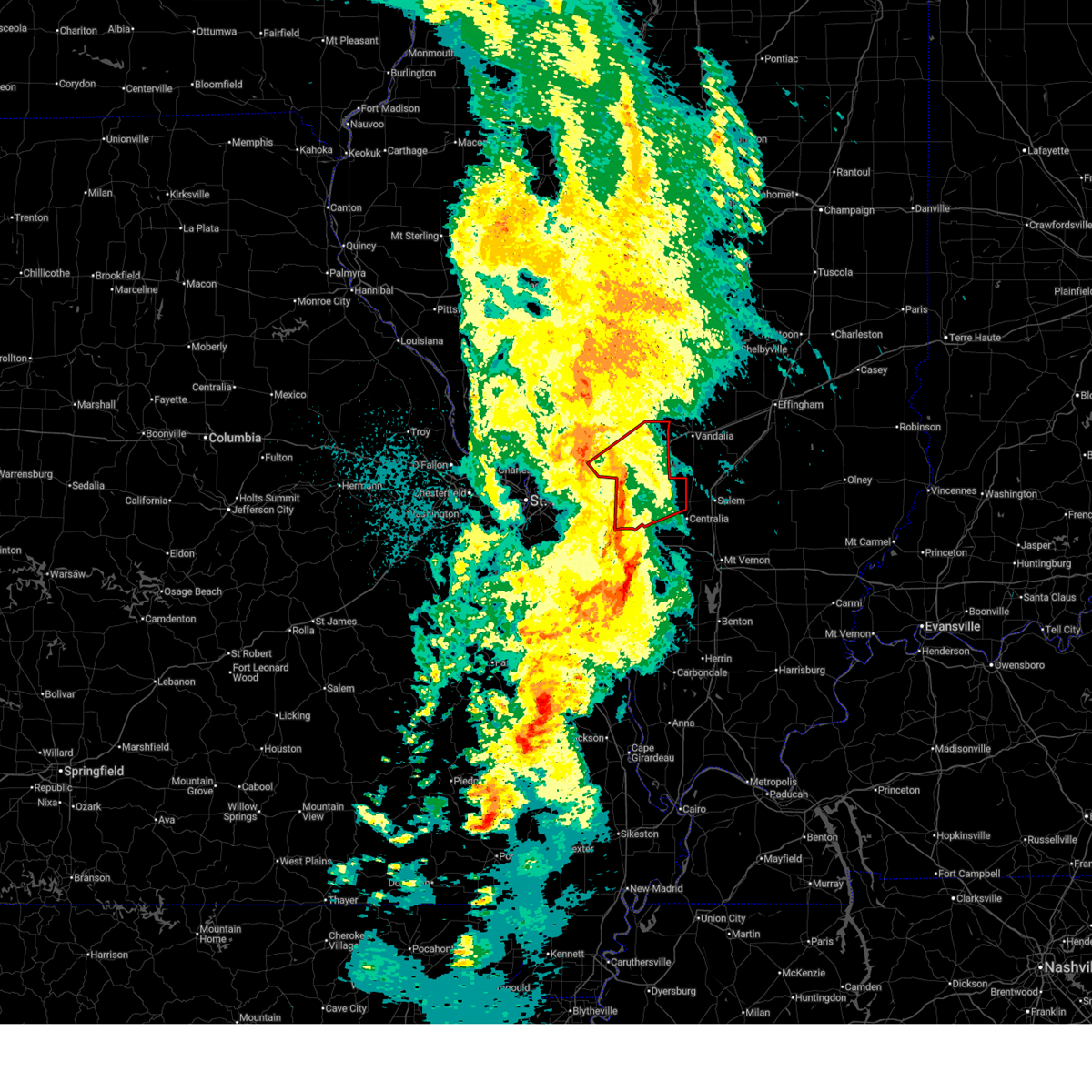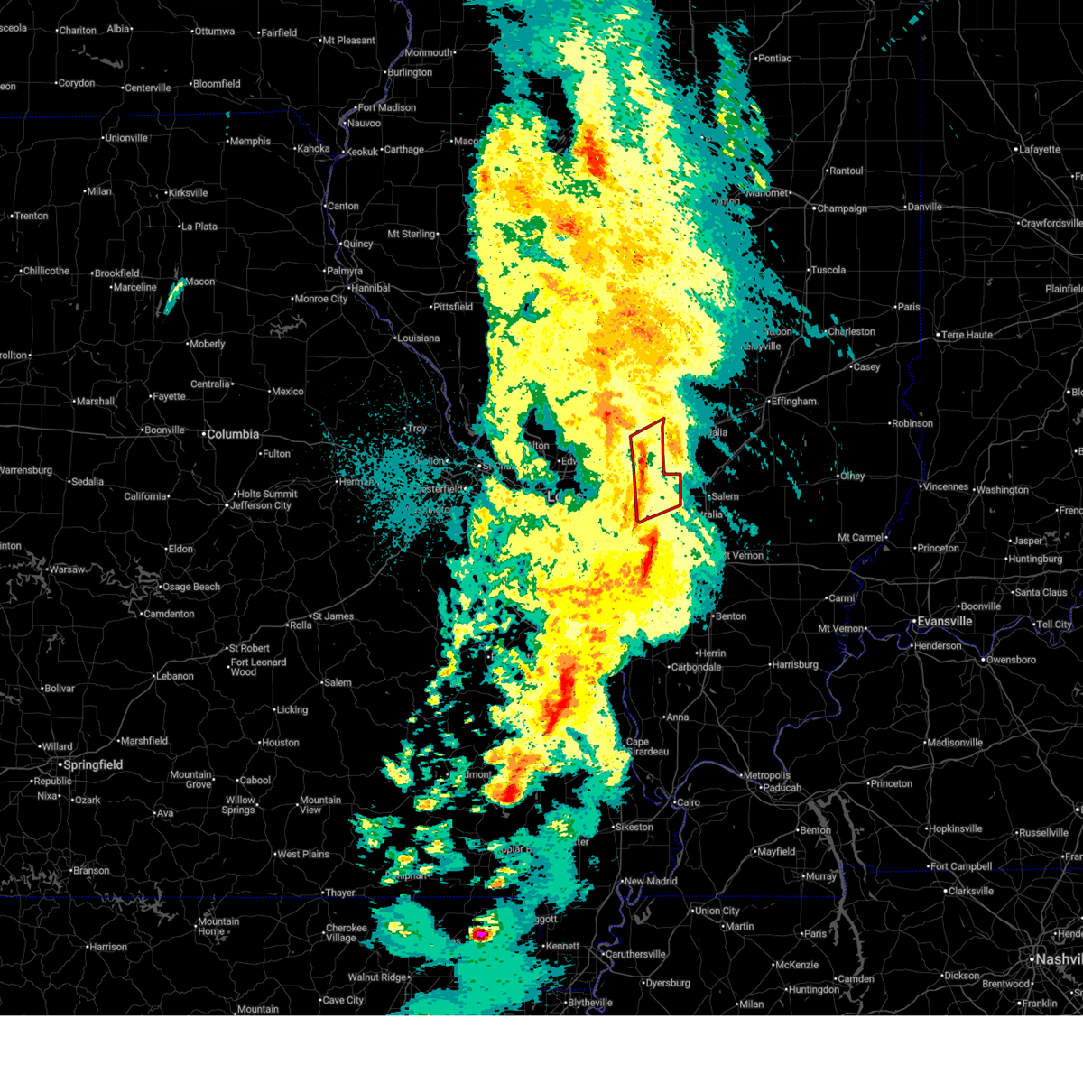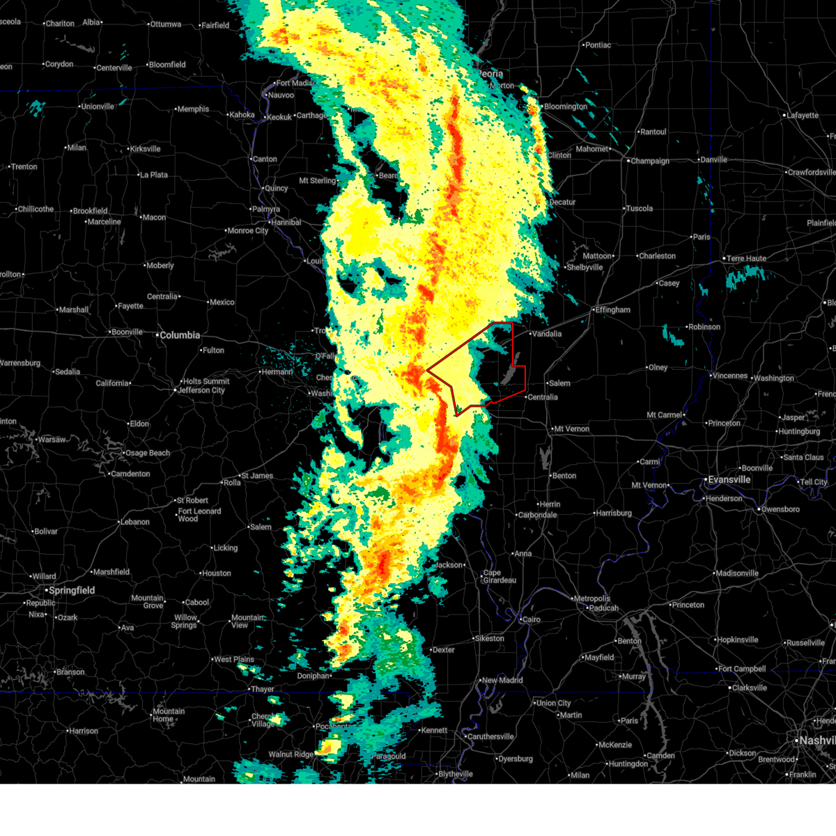 At 445 pm cdt, severe thunderstorms were located along a line extending from near tower hill to near woodlawn, moving east at 60 mph (trained weather spotters. this storm has a long history of damaging winds of 60 to 70 mph). Hazards include 70 mph wind gusts. Expect considerable tree damage. damage is likely to mobile homes, roofs, and outbuildings. locations impacted include, centralia, salem, vandalia, greenville, carlyle, nashville, nokomis, st. elmo, sandoval, wamac, central city, odin, ramsey, witt, kinmundy, brownstown, coffeen, irvington, mulberry grove and patoka. this also includes ramsey lake state park and carlyle lake recreational area. this includes the following highways, interstate 70 in illinois between exits 45 and 76. interstate 57 in illinois between exits 109 and 135. Interstate 64 in illinois between exits 50 and 61.
