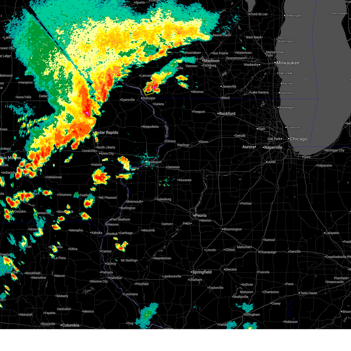 At 607 pm cdt, a severe thunderstorm was located over east dubuque, or near dubuque, moving northeast at 25 mph (radar indicated). Hazards include 60 mph wind gusts and quarter size hail. Hail damage to vehicles is expected. expect wind damage to roofs, siding, and trees. this severe thunderstorm will be near, dickeyville around 620 pm cdt. hazel green around 625 pm cdt. cuba city around 635 pm cdt. Other locations impacted by this severe thunderstorm include georgetown, cornelia, kieler, lock and dam 11 and sandy hook.