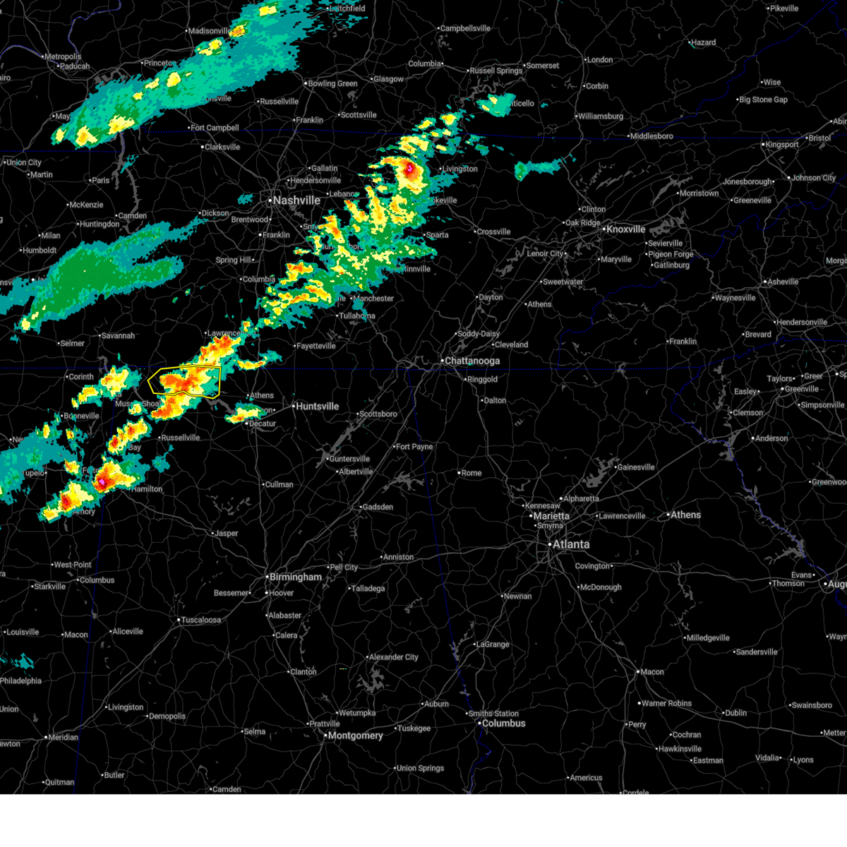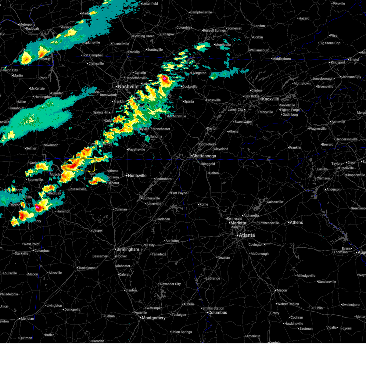 At 1159 pm cst, severe thunderstorms were located along a line extending from near tanner to near cherokee, moving south-southeast at 40 mph (radar indicated). Hazards include 60 mph wind gusts and quarter size hail. Hail damage to vehicles is expected. expect wind damage to roofs, siding, and trees. Locations impacted include, northwestern huntsville, madison, florence, athens, muscle shoals, sheffield, tuscumbia, j p coleman state park, meridianville and hazel green.