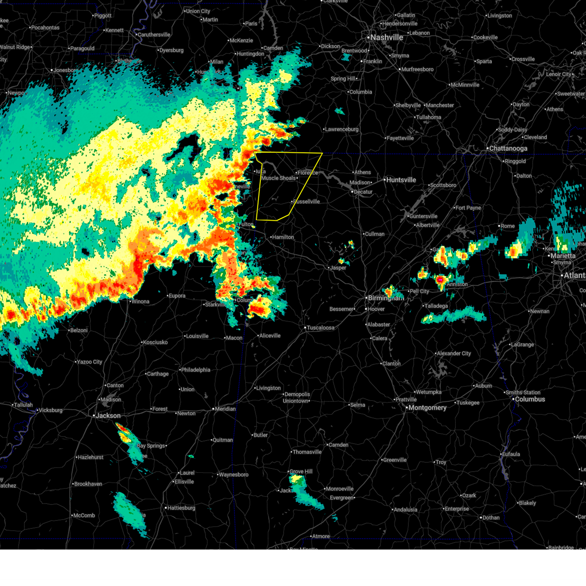 Torhun the national weather service in huntsville alabama has issued a * tornado warning for, west central limestone county in north central alabama, eastern lauderdale county in northwestern alabama, southeastern colbert county in northwestern alabama, north central lawrence county in northwestern alabama, * until 1115 pm cdt. * at 1026 pm cdt, a confirmed tornado was located over sheffield, moving east at 40 mph (broadcast media confirmed tornado). Hazards include damaging tornado. Flying debris will be dangerous to those caught without shelter. mobile homes will be damaged or destroyed. damage to roofs, windows, and vehicles will occur. tree damage is likely. the tornado will be near, sheffield, tuscumbia, florence, and muscle shoals around 1030 pm cdt. st. florian around 1035 pm cdt. killen around 1040 pm cdt. lexington around 1055 pm cdt. Other locations impacted by this tornadic thunderstorm include green hill, northwest alabama regional airport, coxey, oliver, new bethel, oakland, anderson, center star, pride landing, and kingtown.