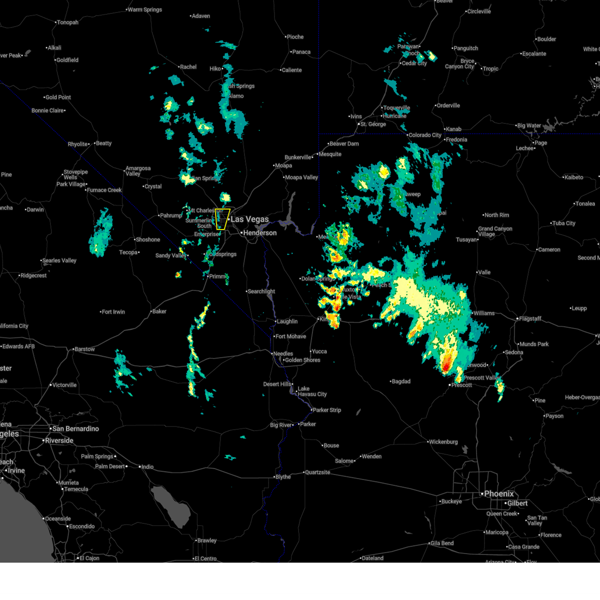 At 639 pm pdt, a severe thunderstorm was located over summerlin, and is nearly stationary. strong wind gusts of 50 mph have been observed across parts of the western las vegas valley and remain possible ahead of the thunderstorm (radar indicated). Hazards include 60 mph wind gusts. Expect damage to roofs and trees. locations impacted include, las vegas, north las vegas, lone mountain, summerlin, the strip, spring valley, centennial hills, paradise, enterprise, red rock canyon campground, north las vegas airport, mccarran international airport, stratosphere tower and the lakes. this includes state route 159 in red rock canyon between mile markers 13 and 14. hail threat, radar indicated max hail size, <. 75 in wind threat, radar indicated max wind gust, 60 mph.