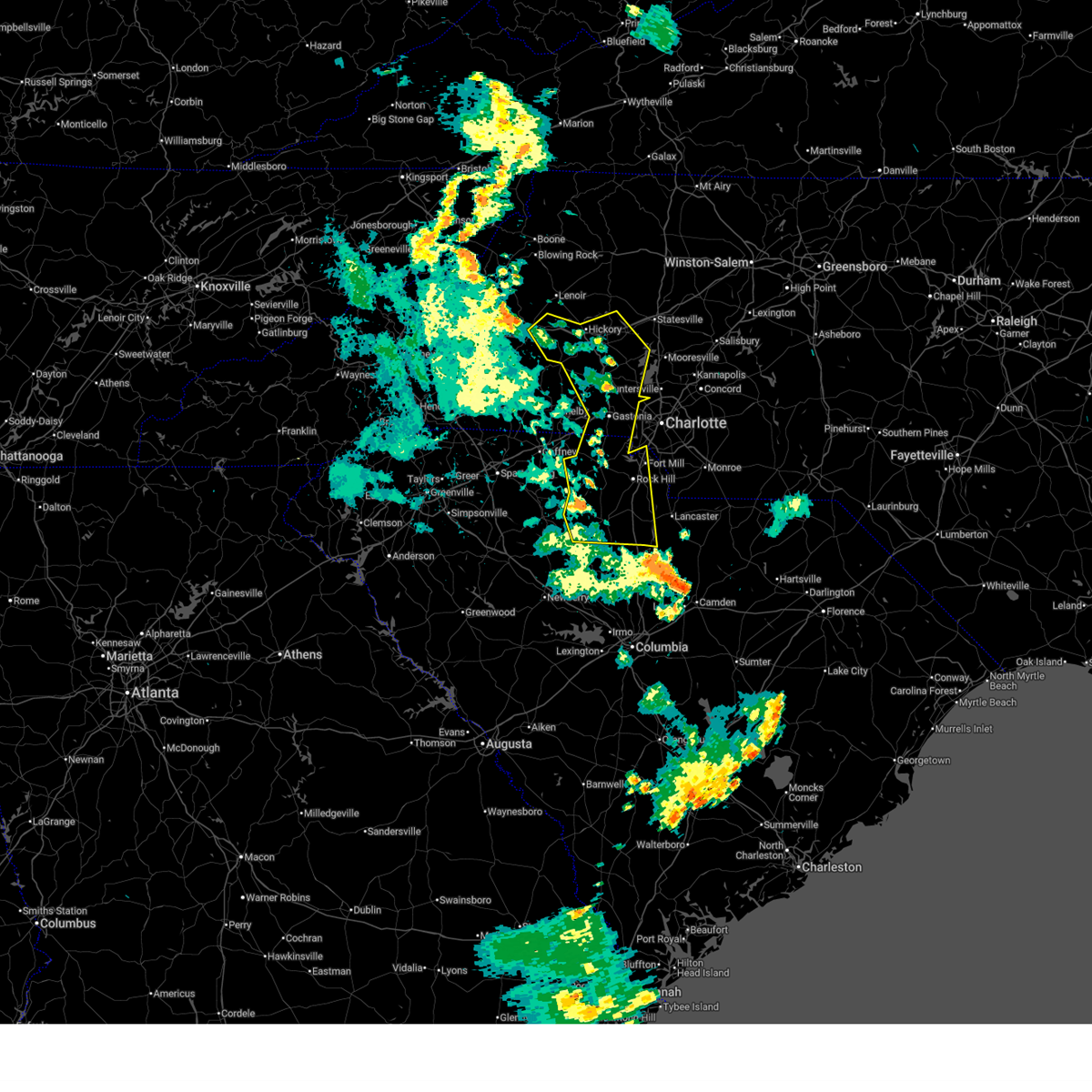 At 823 pm edt, doppler radar indicated a severe thunderstorm capable of producing quarter size hail and damaging winds in excess of 60 mph. this storm was located near hickory, or near lake hickory, moving southwest at 10 mph. locations impacted include, hickory, st. stephens, longview, sawmills, granite falls, hildebran, rhodhiss, hickory regional airport, lake hickory and mountain view.