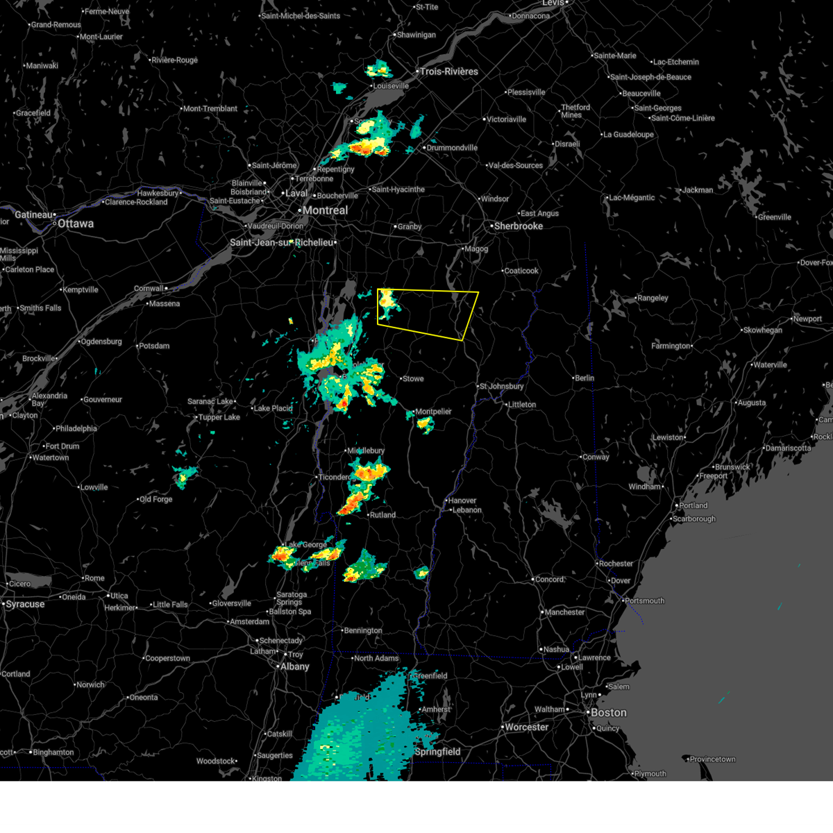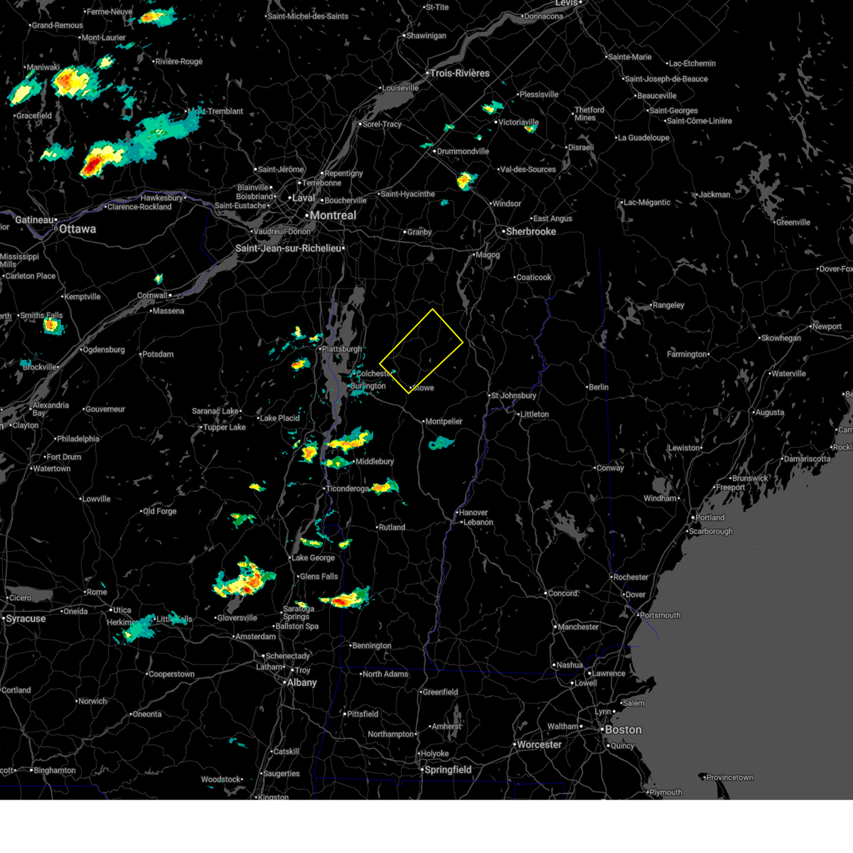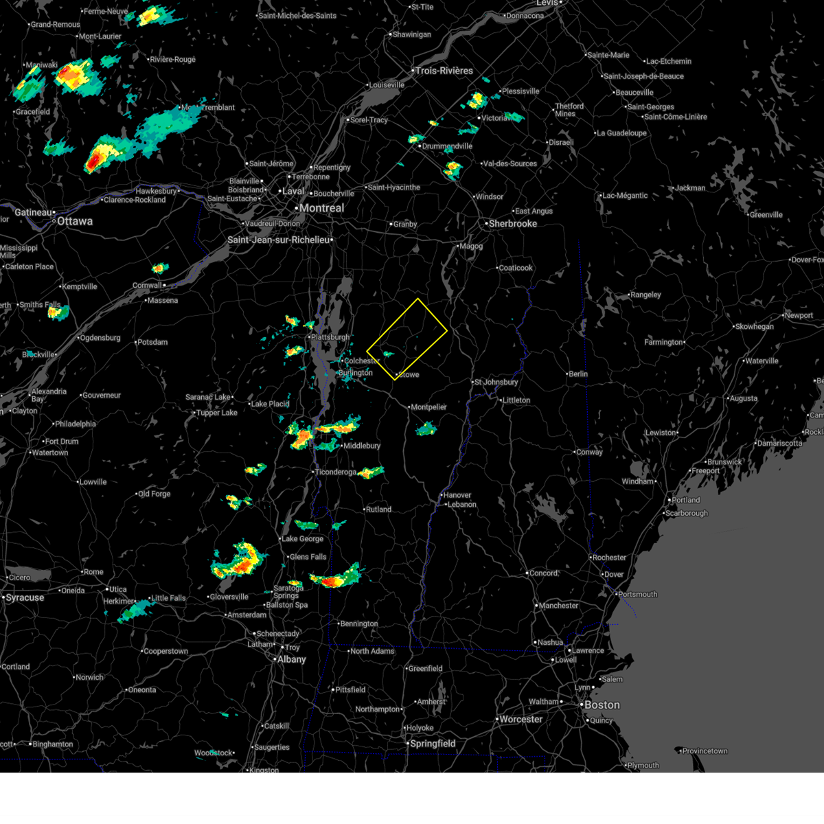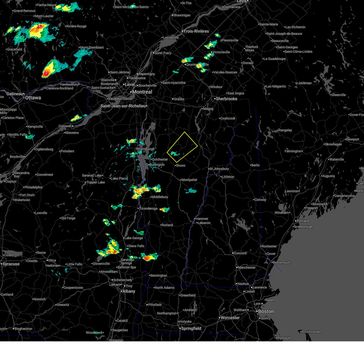 At 607 pm edt, a severe thunderstorm was located over montgomery, moving east at 25 mph (radar indicated). Hazards include 60 mph wind gusts and penny size hail. Expect damage to trees and powerlines. locations impacted include, newport city, enosburg falls, orleans, derby center, charleston, jay, newport town, jay in franklin county, glover, montgomery center, albany, montgomery, fairfax, troy, belvidere center, newark, brownington village, enosburg, west burke village and waterville. A tornado watch remains in effect until 900 pm edt for northwestern vermont.