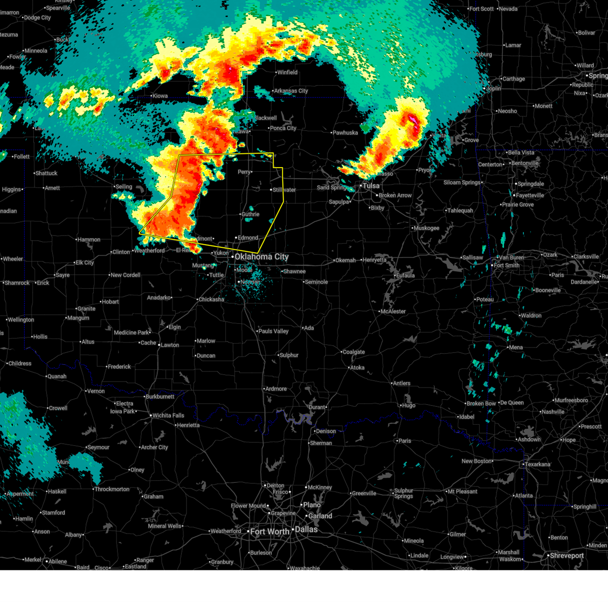 At 1037 pm cdt, severe thunderstorms were located along a line extending from near garber to near crescent to 6 miles southwest of piedmont, moving east at 60 mph (radar indicated). Hazards include 70 mph wind gusts and quarter size hail. Hail damage to vehicles is expected. expect considerable tree damage. wind damage is also likely to mobile homes, roofs, and outbuildings. Locations impacted include, northern oklahoma city, edmond, enid, stillwater, guthrie, perry, kingfisher, choctaw, the village, piedmont, spencer, nichols hills, perkins, jones, langston, crescent, luther, okarche, garber, and cashion.
