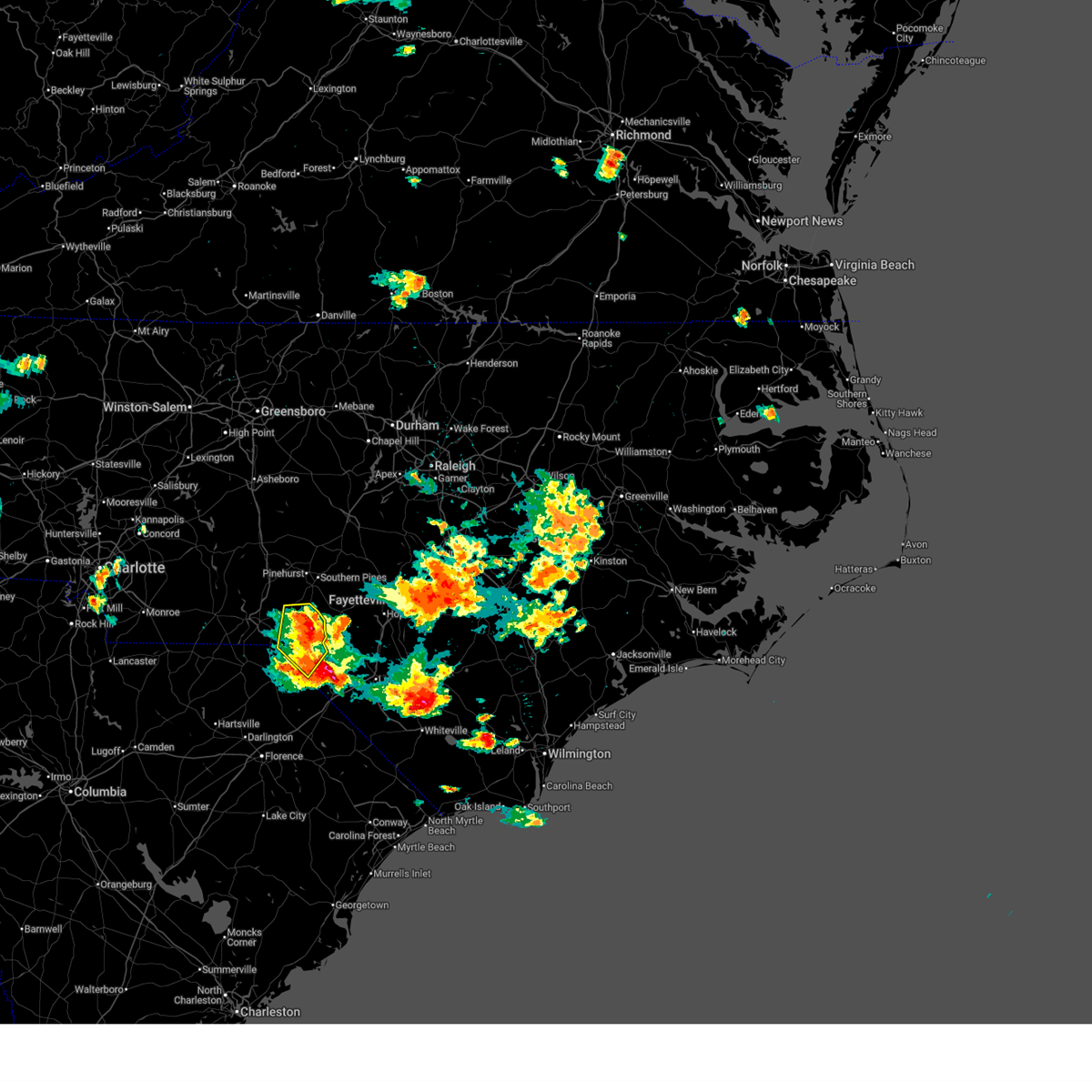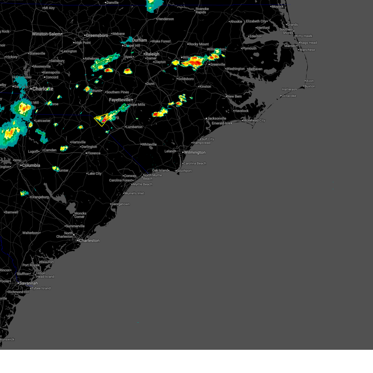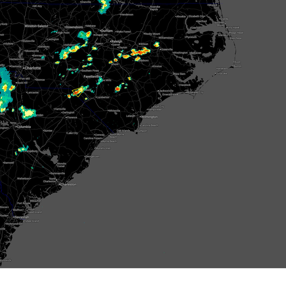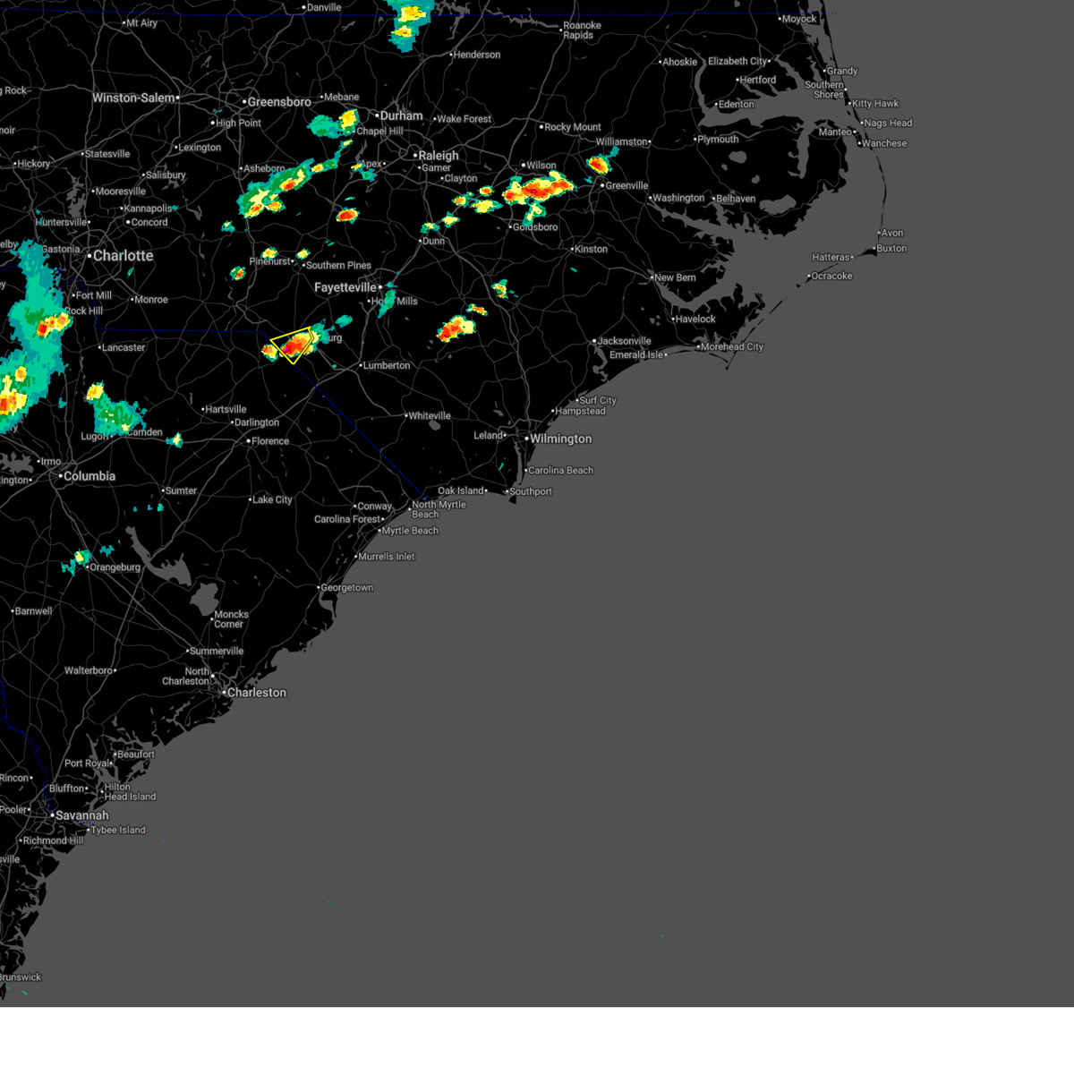 At 949 pm edt, doppler radar continued to indicate a cluster of severe thunderstorms capable of producing damaging winds in excess of 58 mph. these storms were located along a line extending from 13 miles south of biscoe to 6 miles east of hoffman to near antioch, moving northeast at 20 mph. locations impacted include, laurinburg, rockingham, raeford, hamlet, maxton, hoffman, antioch, ellerbe, dobbins heights and wagram.