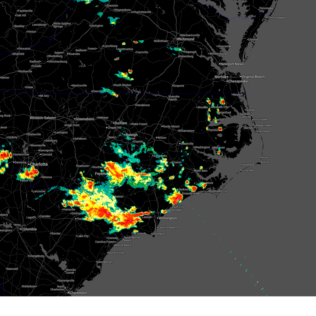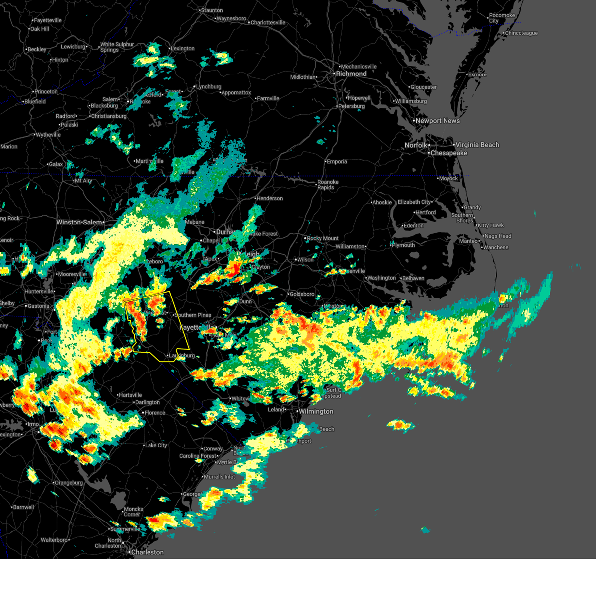 At 638 pm edt, doppler radar continued to indicate a line of severe thunderstorms capable of producing damaging winds in excess of 58 mph. these storms were located along a line extending from near carthage to 6 miles east of southern pines to 7 miles southeast of hamlet, moving east at 25 mph. locations impacted include, fayetteville, sanford, laurinburg, southern pines, raeford, carthage, fort bragg, pinehurst, hamlet and aberdeen.