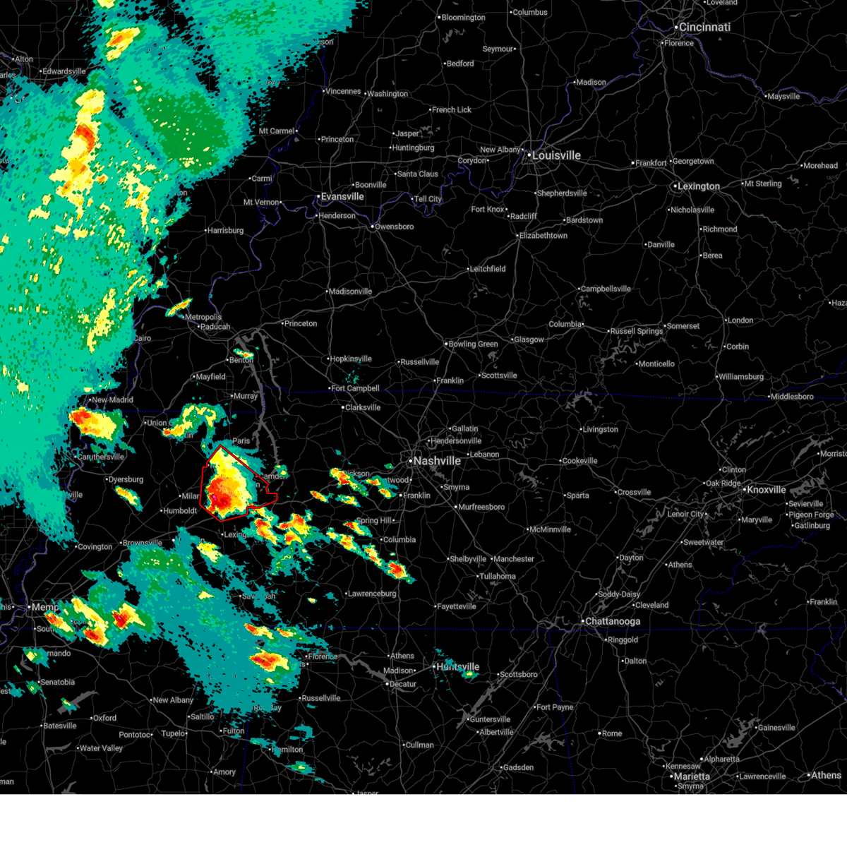 At 1227 am cdt, a severe thunderstorm was located 8 miles southwest of dyer, or 11 miles west of trenton, moving east at 40 mph (radar indicated). Hazards include 60 mph wind gusts and quarter size hail. Hail damage to vehicles is expected. expect wind damage to roofs, siding, and trees. Locations impacted include, dyersburg, humboldt, milan, mckenzie, trenton, newbern, dyer, greenfield, kenton, rutherford, bradford, atwood, bradleytown, unionville, miston, medina, trezevant, friendship, trimble and gibson.