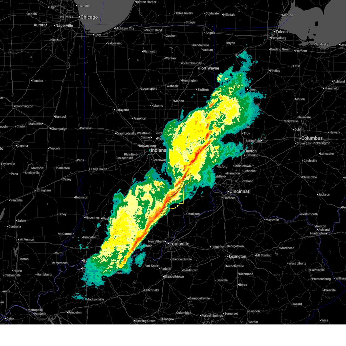 At 1257 pm edt, radar indicated severe thunderstorms located along a line extending from near carlisle to near oldenburg, moving southeast at 40 mph. storm hazards include, winds to 60 mph, penny size hail, frequent cloud to ground lightning, very heavy rain which may cause minor flooding,.