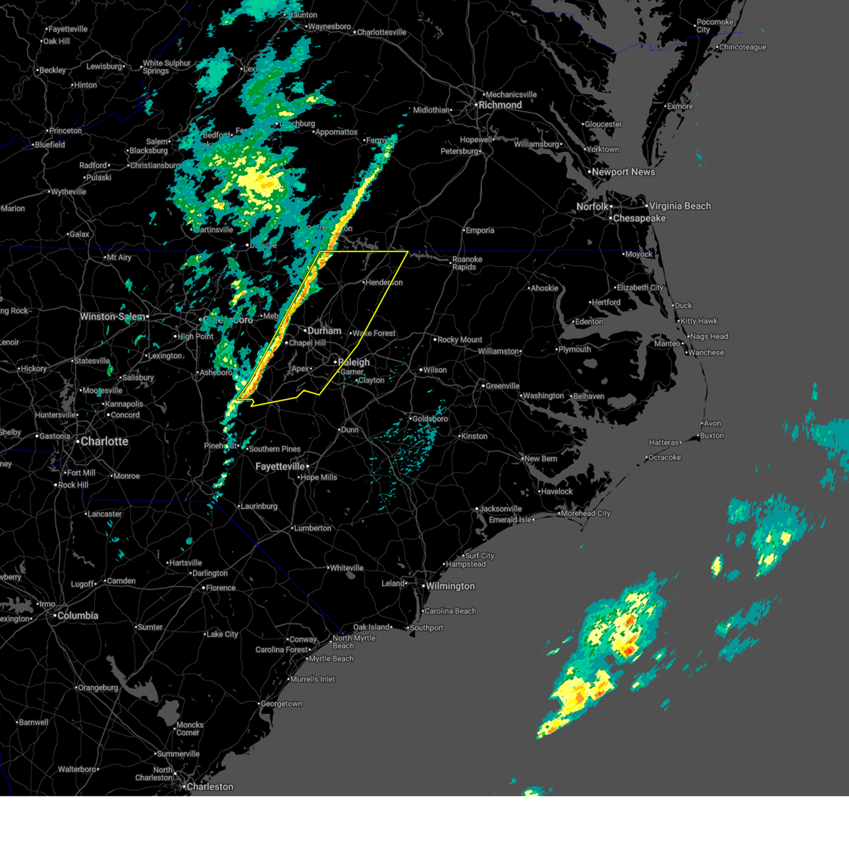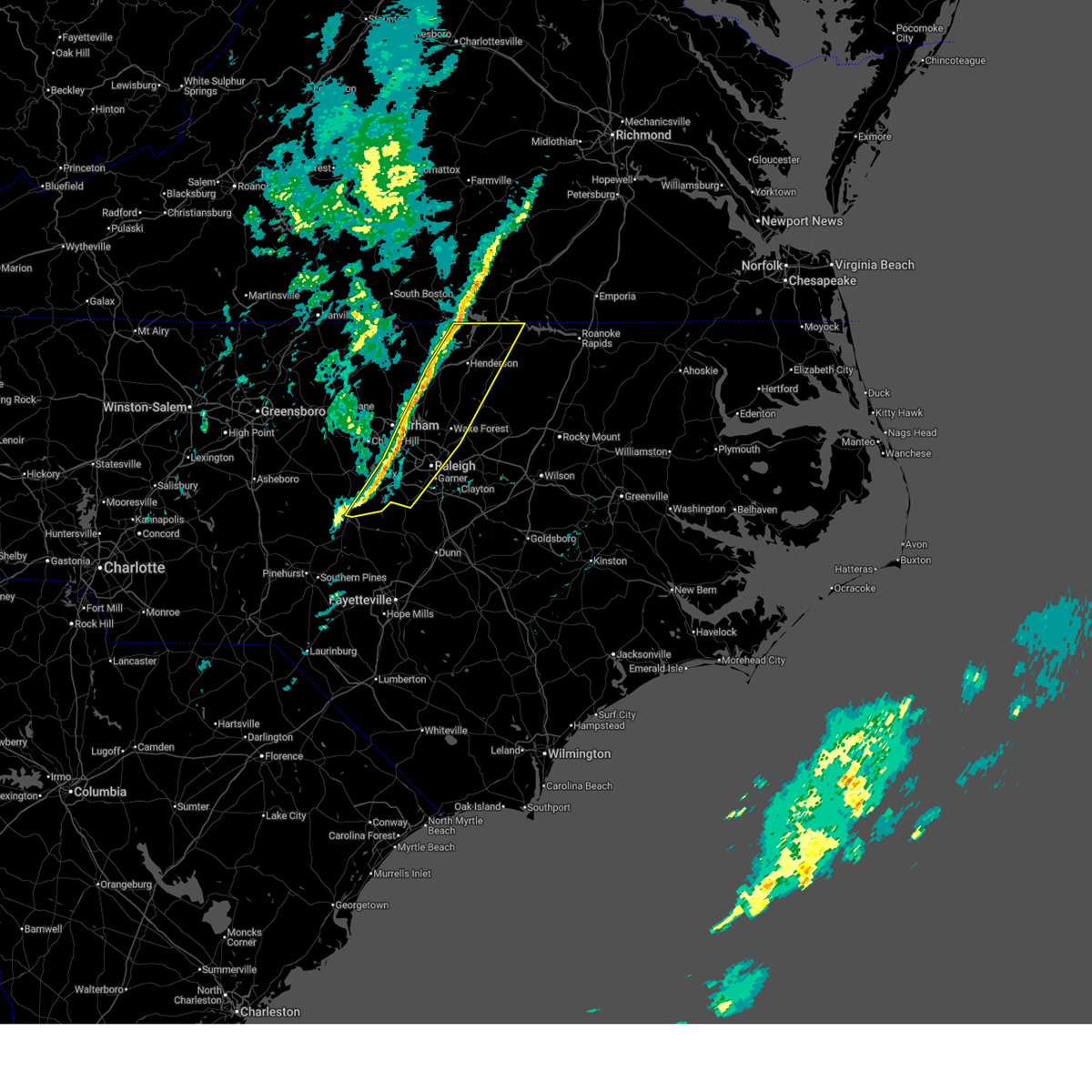 At 642 am est, severe thunderstorms were located along a line extending from 7 miles south of boydton to oxford to 6 miles east of durham to 6 miles northwest of cary to 7 miles northeast of sanford, moving east at 50 mph (radar indicated). Hazards include 60 mph wind gusts. Expect damage to roofs, siding, and trees. locations impacted include, raleigh, durham, cary, sanford, henderson, oxford, creedmoor, warrenton, wake forest, and garner. this includes the following highways, interstate 85 between mile markers 181 and 233. interstate 40 between mile markers 278 and 301. interstate 440 between mile markers 1 and 16. interstate 540 between mile markers 0 and 21. us 1 between mile markers 70 and 101. The durham freeway between mile markers 2 and 6.