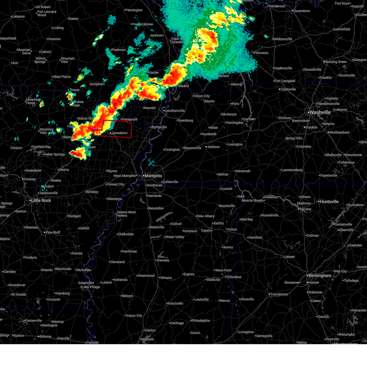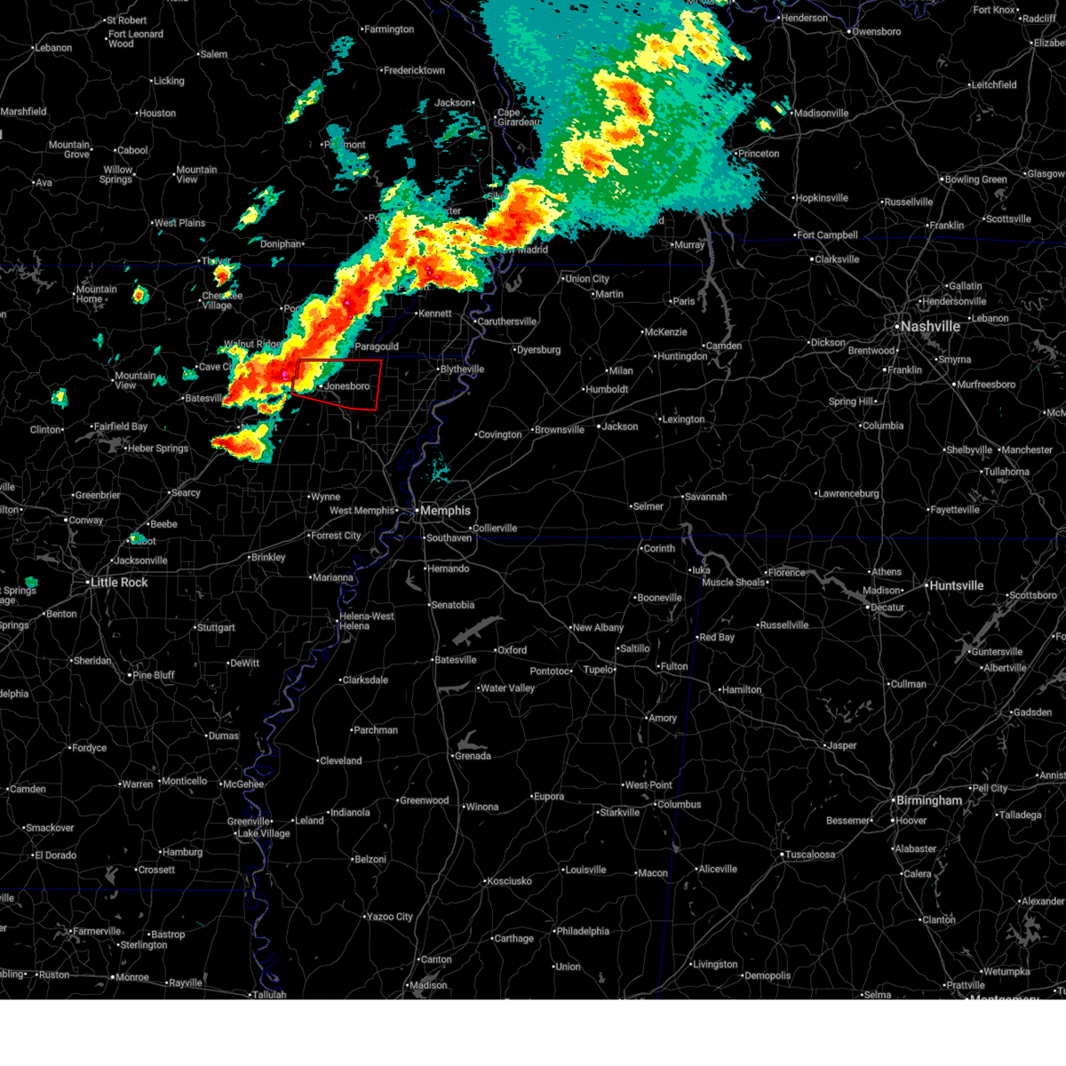At 123 am cdt, a severe thunderstorm was located over paragould, moving northeast at 60 mph (radar indicated). Hazards include 60 mph wind gusts. Expect damage to roofs, siding, and trees. Locations impacted include, jonesboro, paragould, blytheville, kennett, trumann, piggott, gosnell, manila, harrisburg, lake city, leachville, rector, lepanto, bay, senath, brookland, monette, caraway, marmaduke and crowleys ridge state park.
