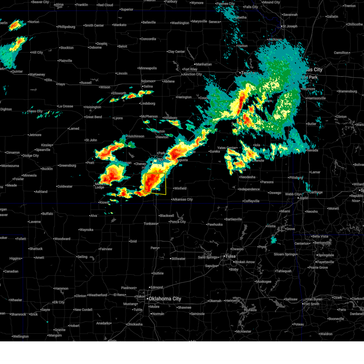 At 817 pm cdt, a severe thunderstorm was located over downtown wichita, moving south at 40 mph (radar indicated). Hazards include tennis ball size hail and 60 mph wind gusts. People and animals outdoors will be injured. expect hail damage to roofs, siding, windows, and vehicles. expect wind damage to roofs, siding, and trees. locations impacted include, wichita, derby, haysville, park city, bel aire, mulvane, rose hill, maize, clearwater, downtown wichita, kechi, eastborough, west wichita, east wichita, eisenhower national airport, northeast wichita, mcconnell air force base, south wichita, oaklawn, and jabara airport. this includes the following highways, interstate 135 between mile markers 0 and 15. Interstate 35 between mile markers 34 and 54.