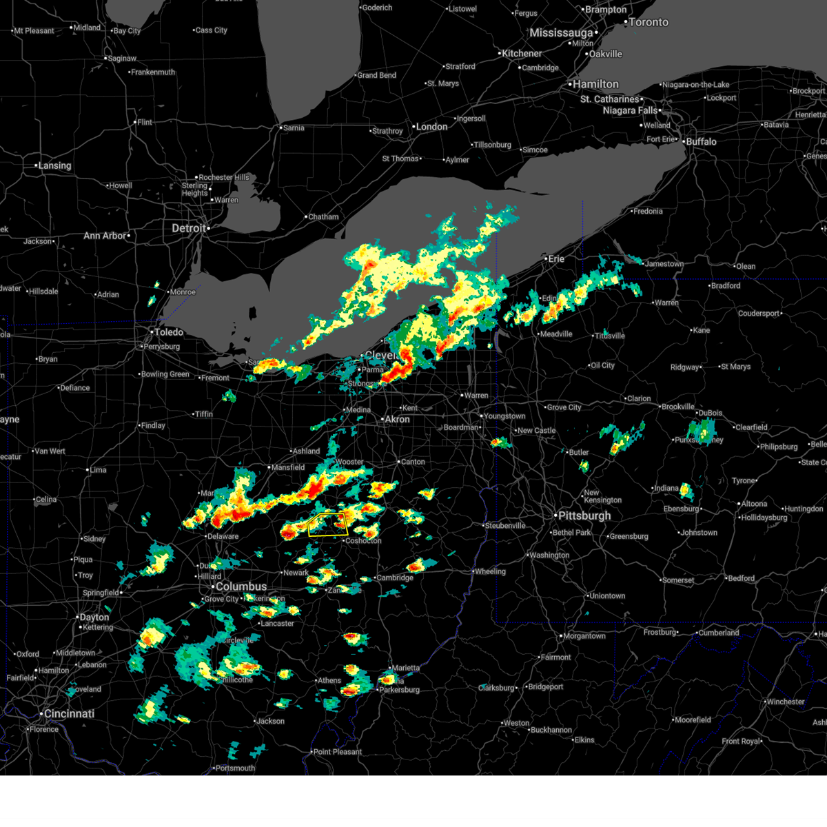The national weather service in pittsburgh has issued a * severe thunderstorm warning for. northwestern coshocton county in east central ohio. western tuscarawas county in east central ohio. until 700 pm edt. At 623 pm edt, a severe thunderstorm was located 7 miles southwest.