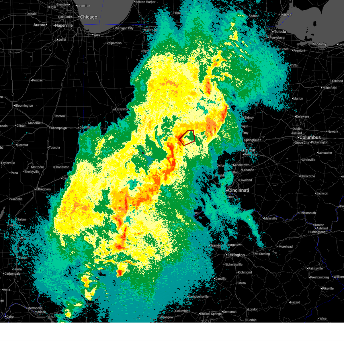 At 333 pm edt, a severe thunderstorm was located 12 miles north of rushville, and moving east at 25 mph (radar indicated). Hazards include 60 mph wind gusts and quarter size hail. Hail damage to vehicles is expected. Expect wind damage to roofs, siding and trees.