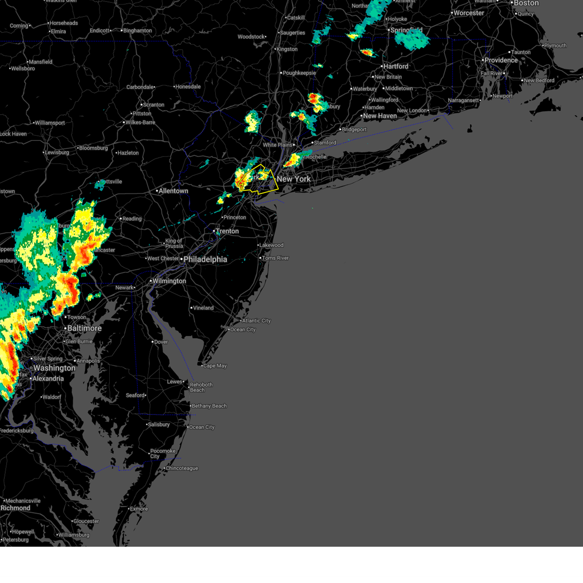 At 806 pm edt, severe thunderstorms were located along a line extending from near warwick to near millington, moving east at 55 mph (radar indicated). Hazards include 70 mph wind gusts. Expect considerable tree damage. damage is likely to mobile homes, roofs, and outbuildings. locations impacted include, new brunswick, perth amboy, morristown, somerville, somerset, edison, east brunswick, carteret, dover, madison, middlesex, florham park, east hanover, lincoln park, bound brook, manville, kinnelon, chatham, boonton, and butler. this includes the following highways, new jersey turnpike between exits 10 and 13. interstate 78 in new jersey between mile markers 32 and 42. interstate 80 in new jersey between mile markers 33 and 47. interstate 287 in new jersey between mile markers 0 and 20, and between mile markers 24 and 54. Garden state parkway between mile markers 125 and 134.