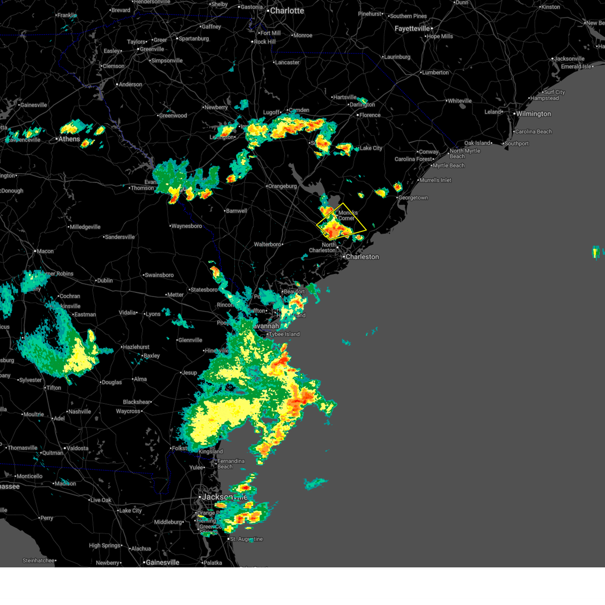 At 635 pm edt, severe thunderstorms were located along a line extending from near eadytown to isle of palms, moving northeast at 45 mph (radar indicated). Hazards include 60 mph wind gusts. Expect damage to roofs. siding and trees. locations impacted include, charleston, north charleston, mount pleasant, goose creek, hanahan, moncks corner, mcclellanville and naval weapons station charleston. a tornado watch remains in effect until 800 pm edt for southeastern south carolina. Possible.
