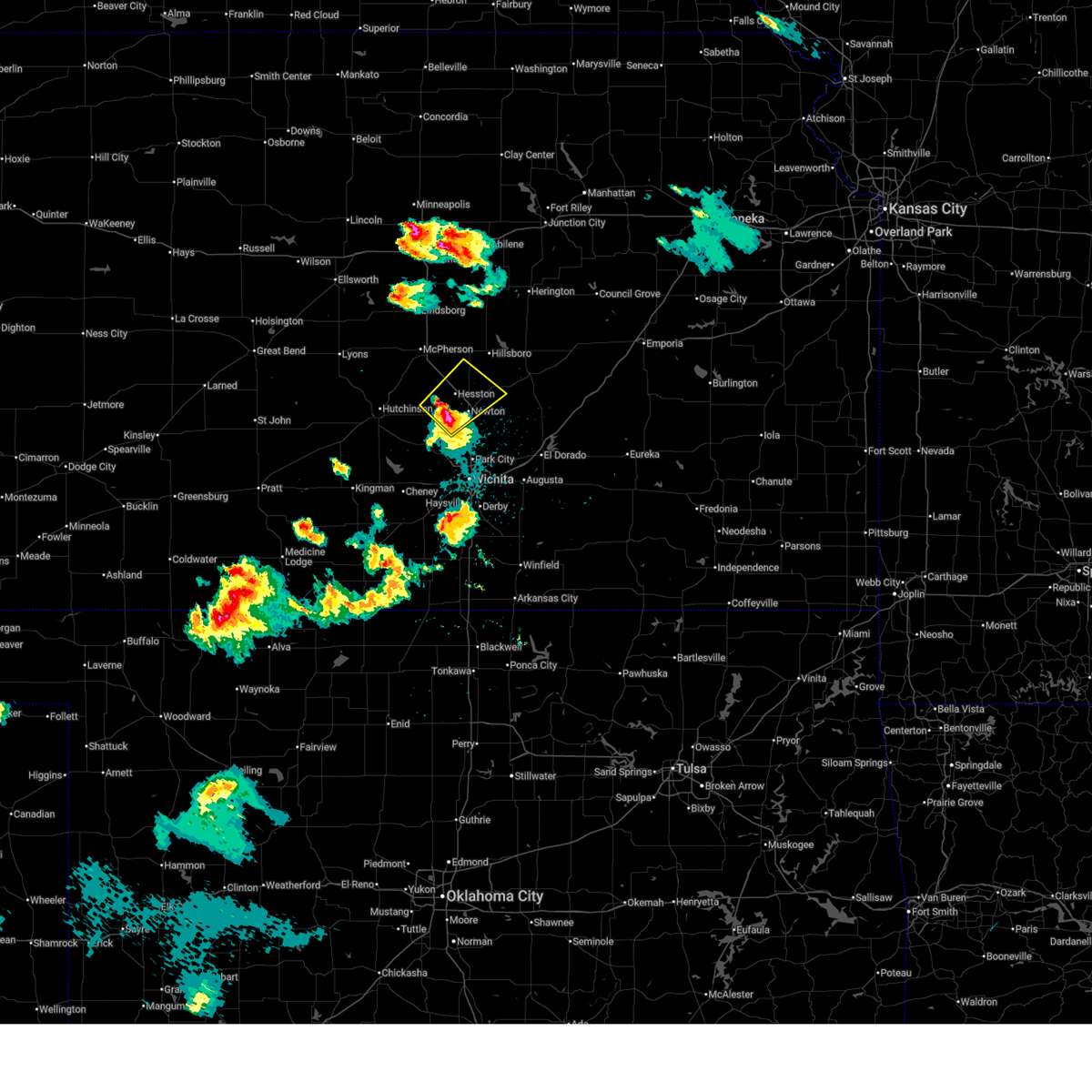 At 508 pm cdt, a severe thunderstorm was located near north newton, moving north at 40 mph (law enforcement). Hazards include tennis ball size hail and 60 mph wind gusts. People and animals outdoors will be injured. expect hail damage to roofs, siding, windows, and vehicles. expect wind damage to roofs, siding, and trees. locations impacted include, newton, park city, valley center, hesston, hillsboro, marion, north newton, sedgwick, peabody, whitewater, goessel, walton, elbing, lehigh and newton airport. A tornado watch remains in effect until 1000 pm cdt for south central kansas.