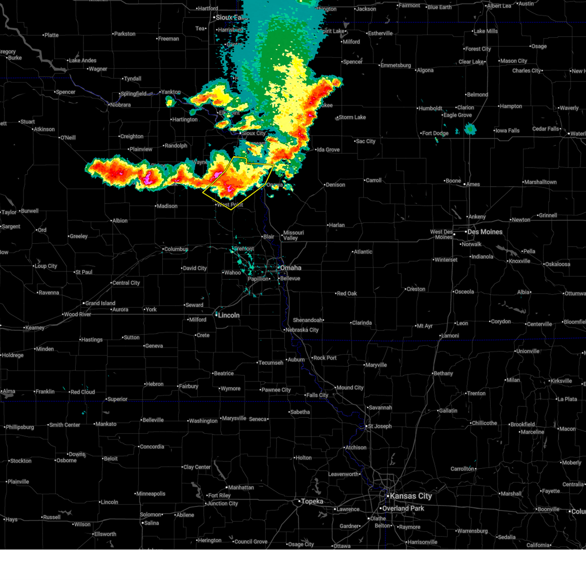 At 141 am cdt, a severe thunderstorm capable of producing a tornado was located 3 miles south of dodge, or 14 miles southwest of west point, moving east at 55 mph (radar indicated rotation). Hazards include tornado. Flying debris will be dangerous to those caught without shelter. mobile homes will be damaged or destroyed. damage to roofs, windows, and vehicles will occur. tree damage is likely. this dangerous storm will be near, dodge and snyder around 145 am cdt. scribner around 150 am cdt. Other locations in the path of this tornadic thunderstorm include uehling.