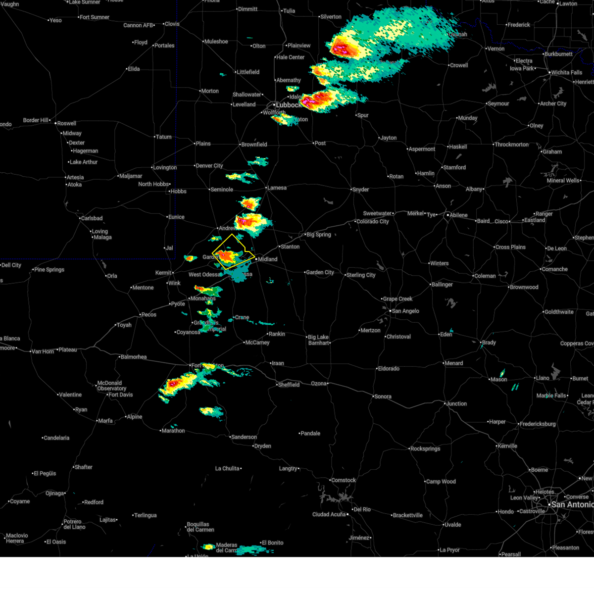 At 545 pm cdt, a severe thunderstorm was located near mission dorado, and moving north at 25 mph. this is a very dangerous storm (trained weather spotters). Hazards include baseball size hail and 60 mph wind gusts. People and animals outdoors will be severely injured. expect shattered windows, extensive damage to roofs, siding and vehicles. Locations impacted include, mission dorado, warfield, midland international, cotton flat and skywest airport.