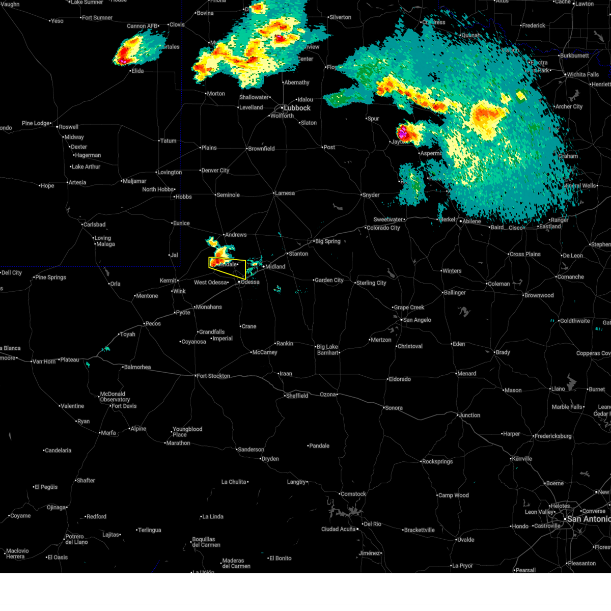 At 832 pm cdt, severe thunderstorms were located along a line extending from 10 miles north of north cowden to 6 miles east of penwell, and moving northeast at 20 mph (radar indicated). Hazards include 70 mph wind gusts and half dollar size hail. Hail damage to vehicles is expected. expect considerable tree damage. wind damage is also likely to mobile homes, roofs and outbuildings. high profile vehicles, such as tractor trailers, recreational vehicles, and large vans, will experience severe control problems, especially on north-south oriented roads. locations impacted include, west odessa, odessa, pleasant farms, penwell, odessa schlemeyer field, gardendale and mission dorado, interstate 20 from mile marker 100 to mile marker 128 , 1. 25in.