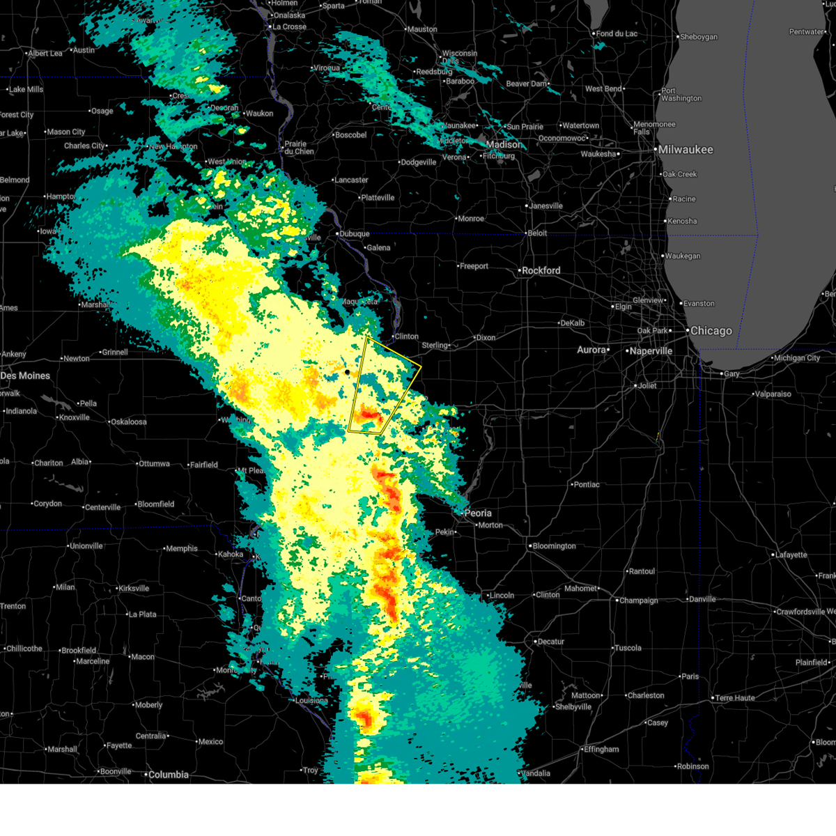 At 1102 pm cst, severe thunderstorms were located along a line extending from near fairhaven to near geneseo to near rio, moving east at 55 mph (radar indicated). Hazards include 70 mph wind gusts. Expect considerable tree damage. damage is likely to mobile homes, roofs, and outbuildings. locations impacted include, sterling, kewanee, rock falls, morrison, cambridge, geneseo, colona, galva, prophetstown, orion, erie, walnut, garden plain, wyanet, atkinson, sheffield, annawan, woodhull, tampico and new windsor. this includes the following highways, interstate 80 in illinois between mile markers 8 and 50. interstate 74 in illinois between mile markers 13 and 33. interstate 88 between mile markers 14 and 44. A tornado watch remains in effect until 400 am cst for north central and northwestern illinois.