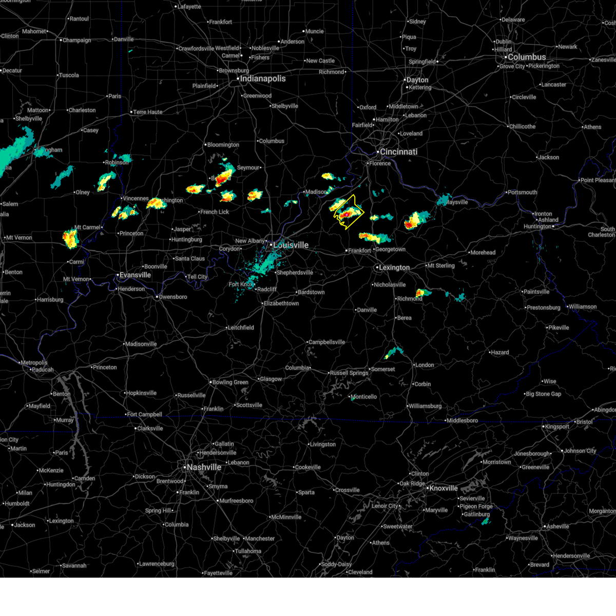 At 534 pm edt, radar continued to indicate a severe thunderstorm located near new liberty, moving east at 30 mph. storm hazards include, winds to 60 mph, quarter size hail, locations impacted include, owenton. in addition, elmer davis lake, long ridge, needmore, holbrook, elk lake and beechwood are near the path of this storm.