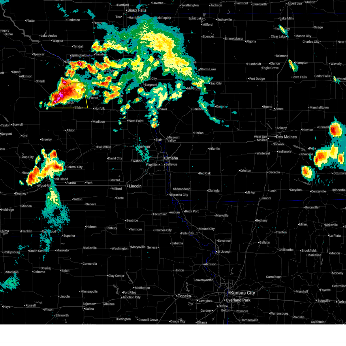 At 935 pm cdt, a severe thunderstorm was located 6 miles east of neligh, or 26 miles west of norfolk, moving northeast at 40 mph (spotter reported). Hazards include 70 mph wind gusts and ping pong ball size hail. strong winds have knocked down power lines and power is out in neligh. People and animals outdoors will be injured. expect hail damage to roofs, siding, windows, and vehicles. expect considerable tree damage. wind damage is also likely to mobile homes, roofs, and outbuildings. locations impacted include, pierce, neligh, plainview, osmond, oakdale, tilden, foster, mclean and willow creek state recreation area. this includes the following highways, highway 275 in nebraska between mile markers 34 and 57. highway 81 in nebraska between mile markers 169 and 177. highway 20 in nebraska between mile markers 349 and 373. A tornado watch remains in effect until 1100 pm cdt for northeastern nebraska.