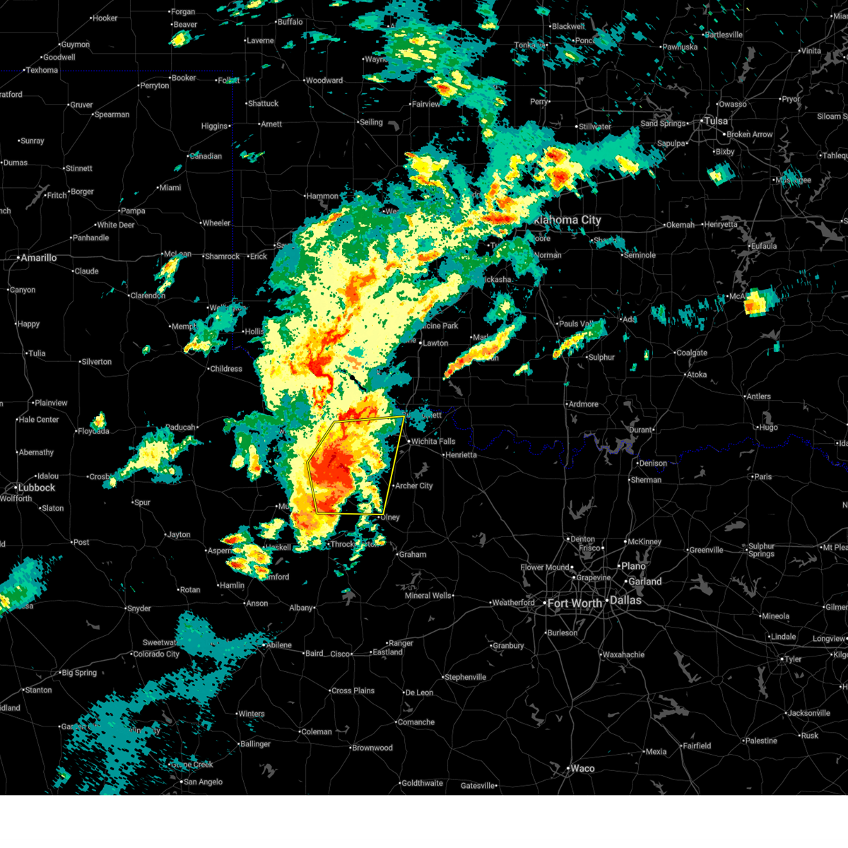 At 626 pm cdt, severe thunderstorms were located along a line extending from near hastings to near byers to 3 miles southwest of petrolia to 5 miles southeast of wichita falls, moving east at 35 mph. these are very dangerous storms (radar indicated). Hazards include 80 mph wind gusts and golf ball size hail. Flying debris will be dangerous to those caught without shelter. mobile homes will be heavily damaged. expect considerable damage to roofs, windows and vehicles. extensive tree damage and power outages are likely. locations impacted include, wichita falls, burkburnett, henrietta, walters, waurika, comanche, temple, ryan, petrolia, byers, dean, randlett, terral, jolly, hastings, addington, sugden, corum, sheppard afb and cookietown. 1. 75in.