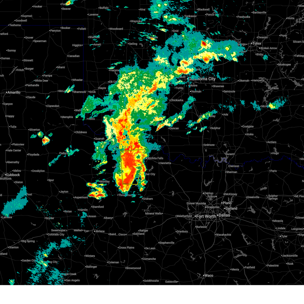 Svroun the national weather service in norman has issued a * severe thunderstorm warning for, west central jefferson county in southern oklahoma, southeastern cotton county in southwestern oklahoma, northwestern clay county in northern texas, northeastern archer county in northern texas, southeastern wichita county in northern texas, * until 1030 pm cdt. * at 937 pm cdt, severe thunderstorms were located along a line extending from 7 miles northwest of byers to near dean to near wichita falls, moving southeast at 25 mph (the wichita falls asos measured a 72 mph wind gust). Hazards include 70 mph wind gusts and nickel size hail. Expect considerable tree damage. Damage is likely to mobile homes, roofs, and outbuildings.