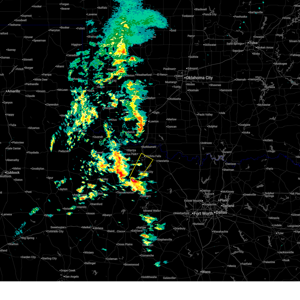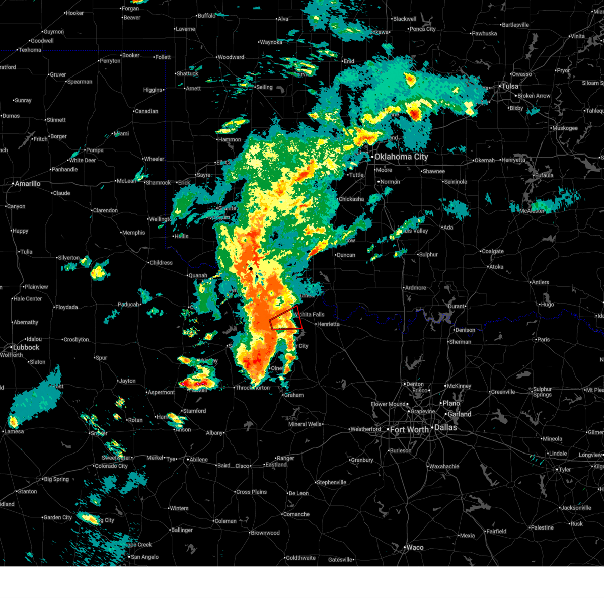 At 642 pm cdt, severe thunderstorms were located along a line extending from 3 miles north of grandfield to 4 miles east of randlett to 3 miles east of dean to 3 miles south of windthorst, moving northeast at 30 mph (radar indicated. there have also been numerous reports of 60 to 80 mph wind gusts with damage across the red river valley and northern texas). Hazards include 70 mph wind gusts and half dollar size hail. Hail damage to vehicles is expected. expect considerable tree damage. wind damage is also likely to mobile homes, roofs and outbuildings. Locations impacted include, wichita falls, burkburnett, henrietta, walters, waurika, archer city, iowa park, comanche, geronimo, grandfield, temple, ryan, petrolia, scotland, byers, dean, chattanooga, randlett, windthorst and terral.